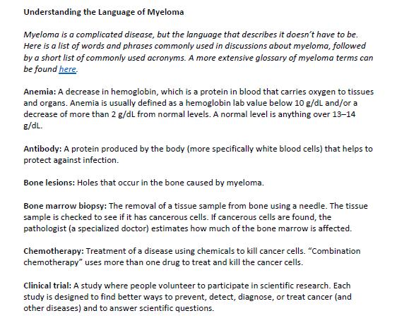 • KNOW the signs/symptoms of myeloma – Fatigue, Pain and Anemia