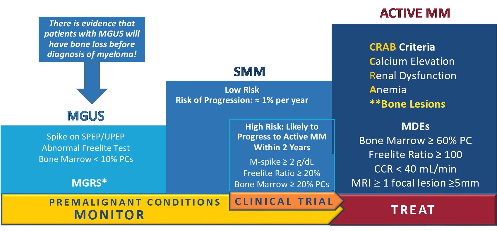 Hillengass 2019 Lancet Oncol, Rome 2017 Clin J Oncol, Faiman 2014 Clin Lymphoma Myeloma Leuk, Dimopoulous 2009 Leukemia