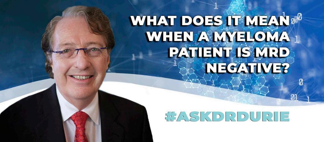 Myeloma Today Summer 2022 edition publications.myeloma.org videos.myeloma.org IMF Chairman, Chief Scientific Officer, and myeloma expert Dr. Brian G.M. Durie discusses MRD and what it means for a patient to be MRD-negative. Watch Now M-POWER New York Virtual Webinar