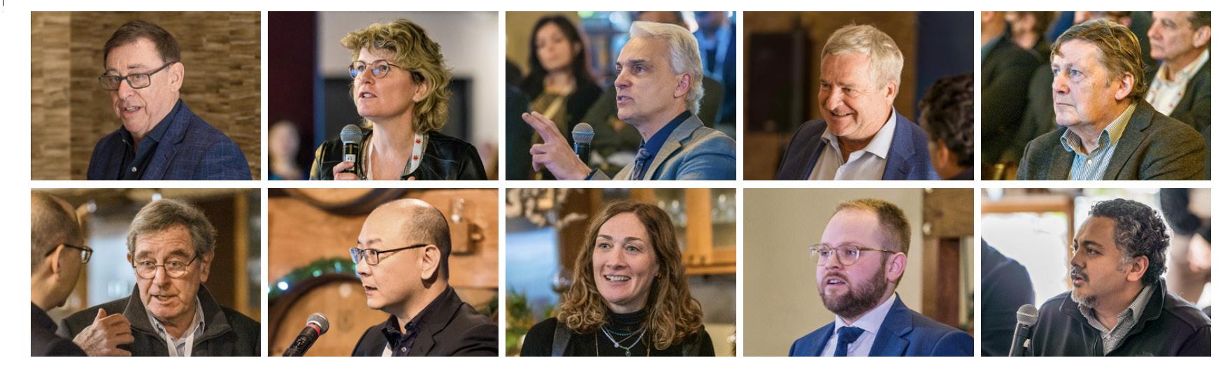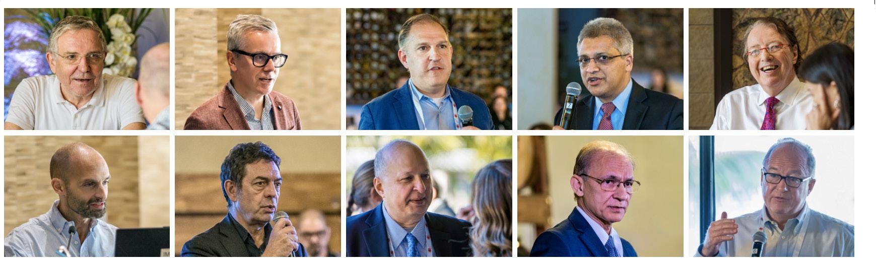 Rangée du haut, de gauche à droite : Dr. Hartmut Goldschmidt, Dr. Sigurður Kristinsson, Dr. Peter Voorhees, Dr. Shaji Kumar, Dr. Brian G.M. Durie Rangée du bas, de gauche à droite : Dr. Bruno Paiva, Dr. Philippe Moreau, Ashraf Badros, Dr. Nikhil Munshi, Dr. Paul Richardson