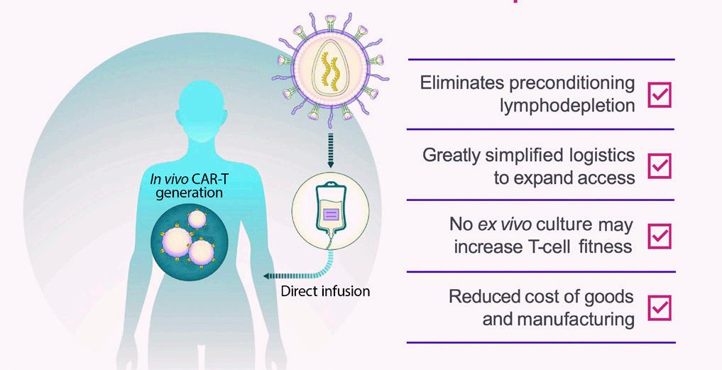 In vivo CAR-T is an amazing concept. It could allow much easier access to CAR T-cell therapy, which currently is a challenge and a huge disparity in myeloma. The patients treated with in vivo CAR-T in the clinical trial, all of whom have high-risk multiple myeloma (HRMM) and had been heavily pre-treated, achieved MRD-negativity in the first month and experienced fewer side effects than we typically see in ex vivo CAR T-cell therapy. In vivo CAR T-cell therapy is a big step forward in making the most effective myeloma therapy safer and more accessible for our patients.