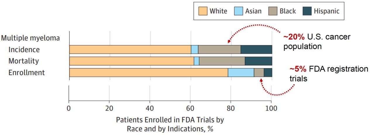 Source: FDA-AACR Workshop to Examine Underrepresentation of African Americans in Multiple Myeloma Clinical Trials. Washington D.C., Feb 2020