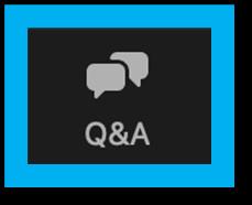 • Open the Q&A window,allowing you to ask questions to the host and panelists. They can either reply to you via text in the Q&A windowor answer your question live.