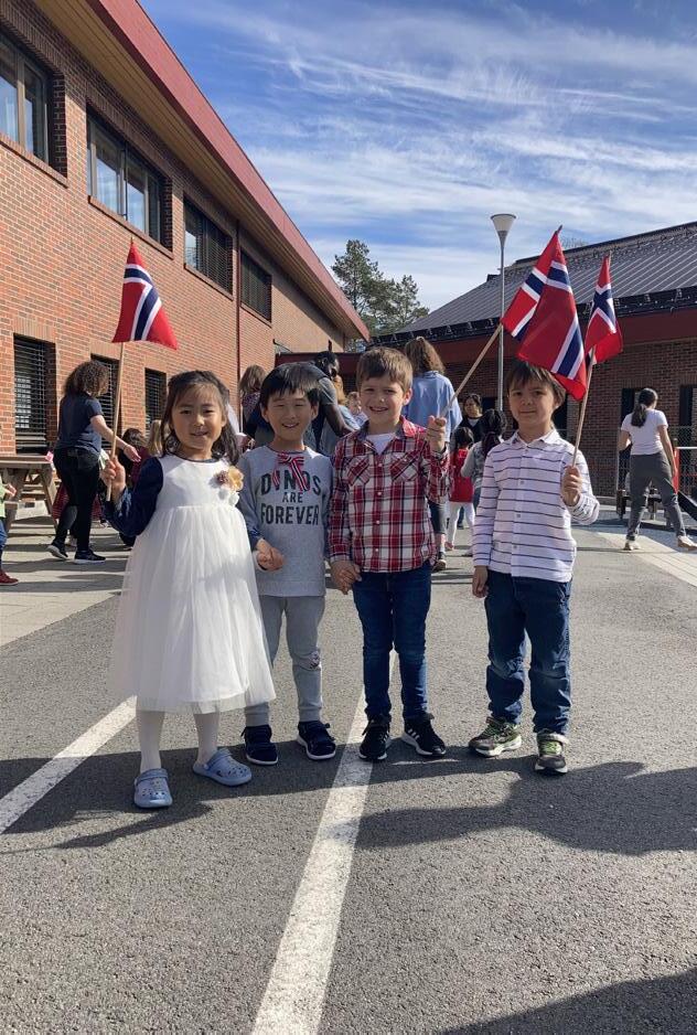 Close to the 17th, we celebrate in the kindergarten with games and songs with the children. There will be ice cream and pancakes on the menu, and we play games outdoors. The older children join in a parade that visits the care home in the area, while the rest of the ECC stays to play.