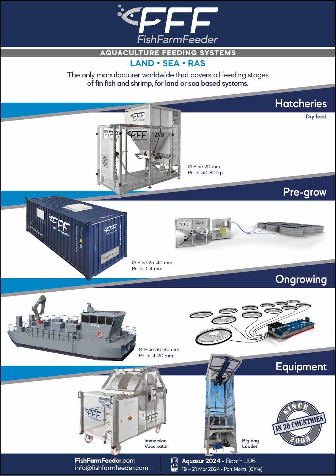 FishFarmFeeder er et selskap som ble grunnlagt i 2008 og produserer fôringssystemer for akvakultur med en komplett katalog av fôringsautomater som dekker alle stadier i fiskens liv: klekkeri, pre-grower og grow-out, både på land og i sjøen.
