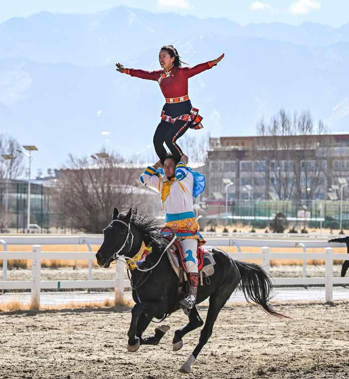 ON FEBRUARY 12, the third day of the Tibetan New Year, in Lhasa, which is found in the southwest China’s Xizang Autonomous Region, an equestrian team staged a display of traditional horseracing.