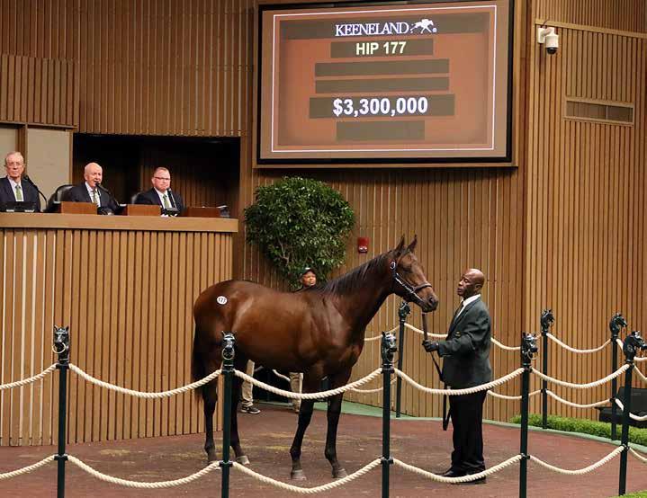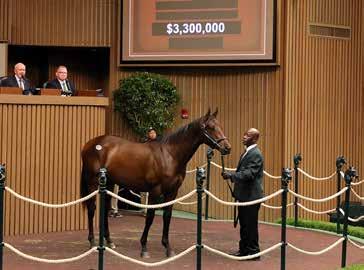 She resold at Keeneland last year through Adrian Regan and Fergus Galvin’s Hunter Valley Farm for $100,000 to Big Sky Racing. Named Bottle Of Rouge, she is trained by Bob Baffert for his wife Jill, and she won the Debutante in style, giving her trainer a twelfth win in the race.