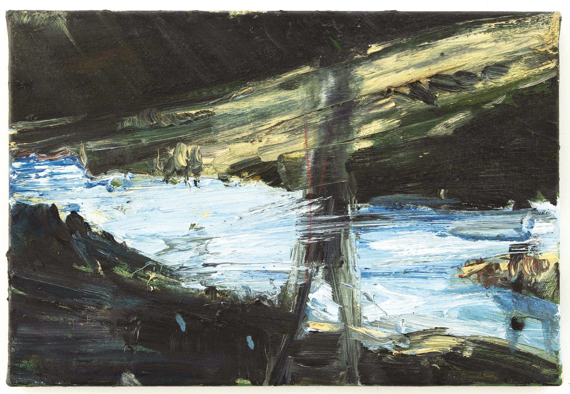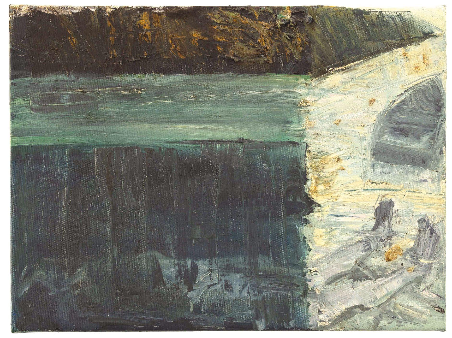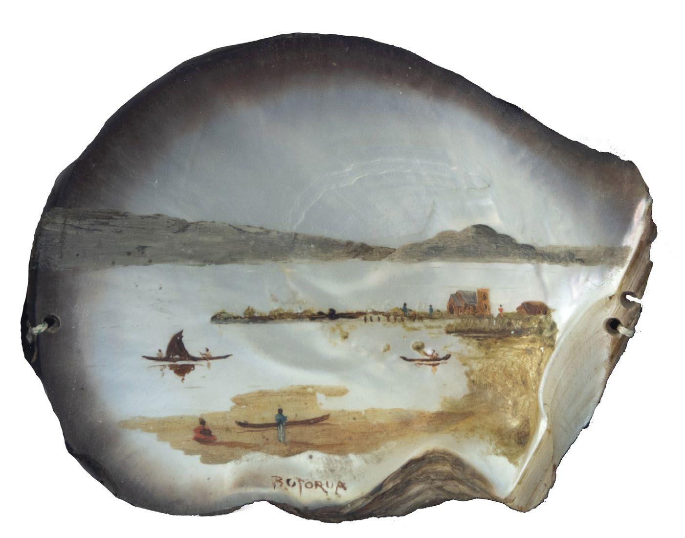 Oil on oyster shell 11 x 13.5 cm Inscribed