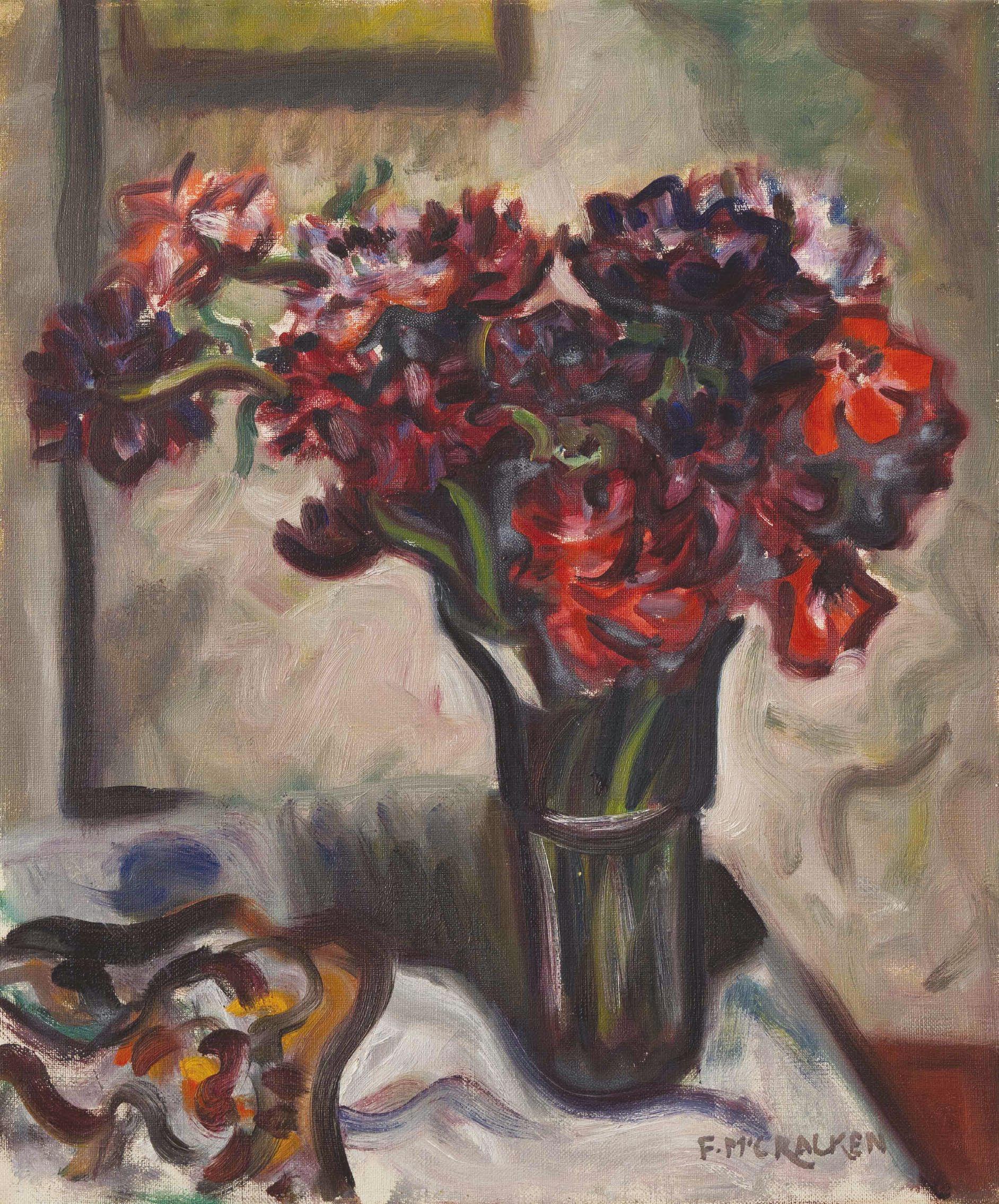 It is rare to uncover a hidden painting, let alone to find two hidden works. Beneath the surface of Anemones (Lot 11) lay two complete earlier works, each more traditional in treatment than the last. Together they chart Francis McCracken’s evolution as an artist, from academic naturalism to a confident modernist voice shaped by European colour and form.