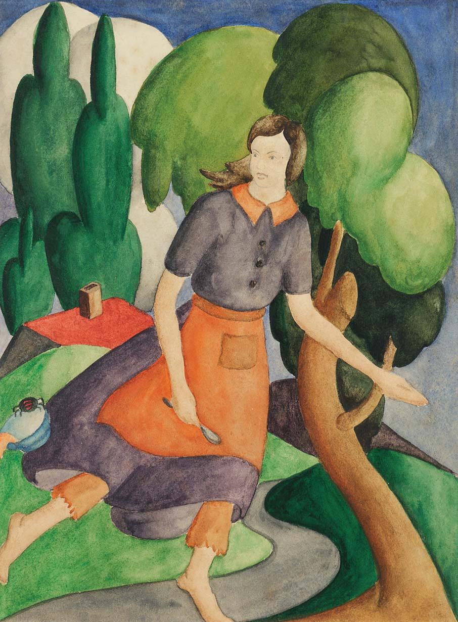 A contemporary of White’s, Marguerite Parson (neé Cotton) skillfully preserved moments of time in works of illustrative vibrancy bursting with life as illustrated in Rhythm. Born in Waipori in 1912 Cotton was the only daughter of four. She attended the Canterbury College of Art and in her second year, exhibited in the Academy of Fine Arts 1934 exhibition. 1935 saw Cotton gain a New Zealand Diploma of Fine Arts, being only one of two students to achieve