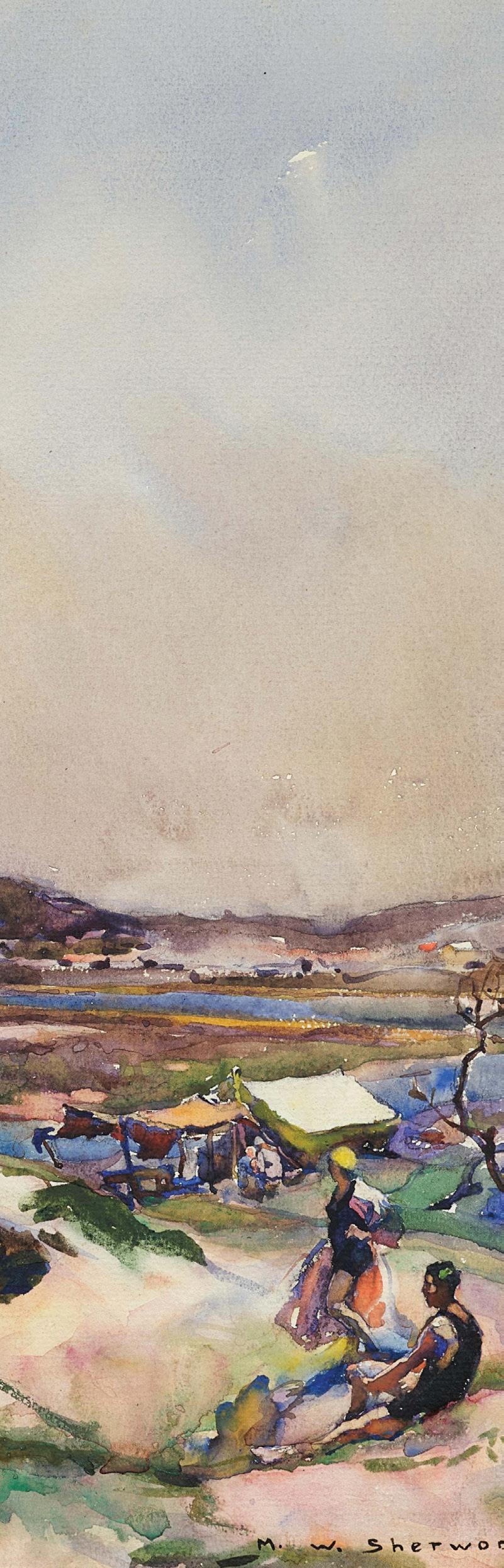 By the mid-20th century, there was strong institutional fixation on emerging modernism and landscape art in New Zealand. It is therefore not surprising that Anna Lois White found herself marginalised by the art world throughout her career. Despite the knowledge that her work did not align to institutional tastes or trends, White pursued an individual tradition of classically-inspired symbolism integrating allegorical, art historical, biblical and political concerns. In the 1940s, given the limited materials available during wartime, White had to abandon the large-scale compositions in oil that had dominated her output in the previous decade. She began working on a smaller scale, primarily in watercolour as can be seen in the works illustrated in this catalogue.