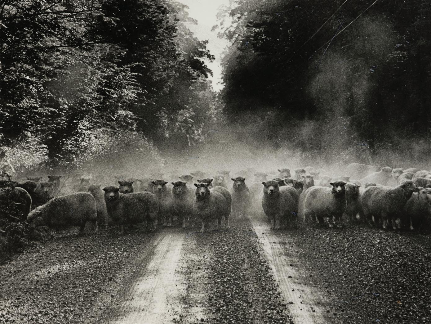 Marti Friedlander was one of the most important photographers of twentieth-century New Zealand. In the 1960s and 1970s her work was included in numerous publications, including the New Zealand Herald, the New Zealand Listener and Art New Zealand. It was during this time that she captured the image, Louise Henderson Studio. This portrait depicts Louise Henderson, now known as one of New Zealand’s leading twentieth-century abstract artists, seated directly in the middle of the composition, dressed all in white against an immaterial black background. This emotive, monochromatic capture of an enigmatic subject is characteristic of Friedlander’s style. This is evident too in her iconic image, Eglinton Valley. Here, Friedlander depicts a ubiquitous New Zealand symbol, the sheep. The band of sheep stand close together, gazing warily out at the viewer as if questioning their presence. This is one of Friedlander’s best-known works and was used as the key image for her 2001 solo exhibition at the Auckland Art Gallery. In 1999 Friedlander was made a CNZM for services to photography, in 2011 an Arts Foundation Icon, and the University of Auckland granted her an honorary doctorate in 2016.