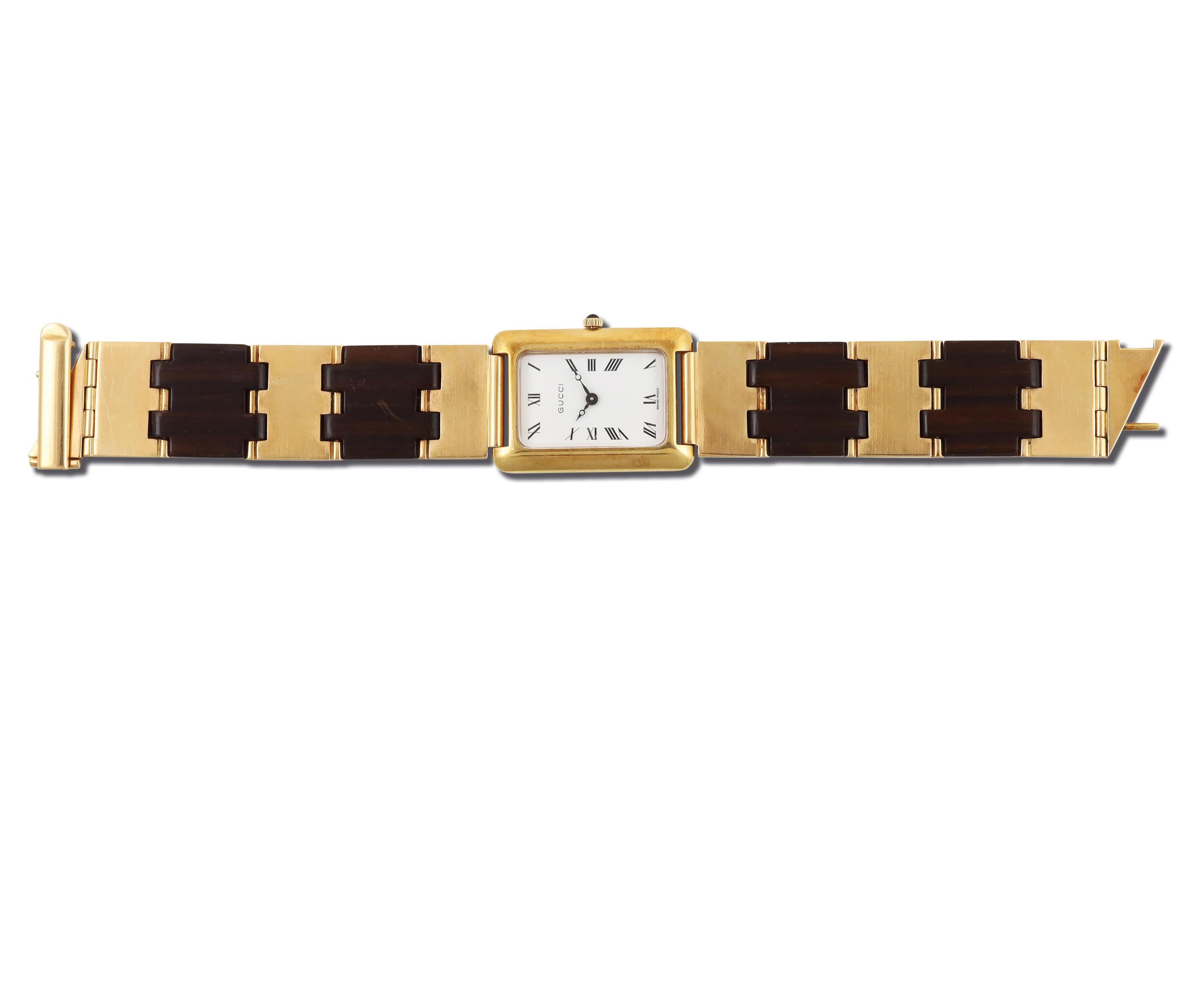 Elegant, self-winding, 18K yellow gold wristwatch with gold original riveted bracelet and deployant clasp