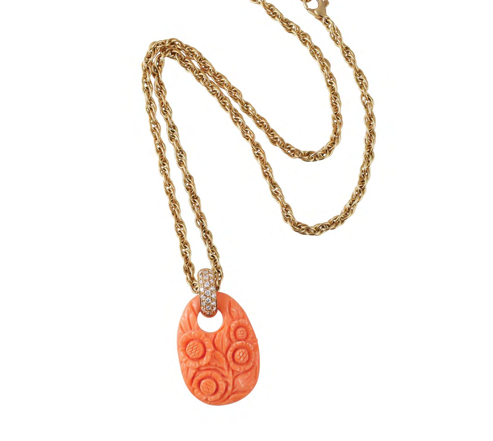 ~ LOT OF CORAL NECKLACE WITH 18KT GOLD CASP AND A PAIR OF 18KT GOLD EARRINGS WITH CORAL
