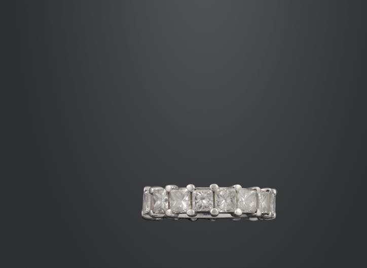 in oro giallo, smeraldo a forma rettangolare ad angoli tronchi, del peso di 5,50 ct ca. affiancato da brillanti del peso complessivo di 0,30 ct ca., gr. 8,8.