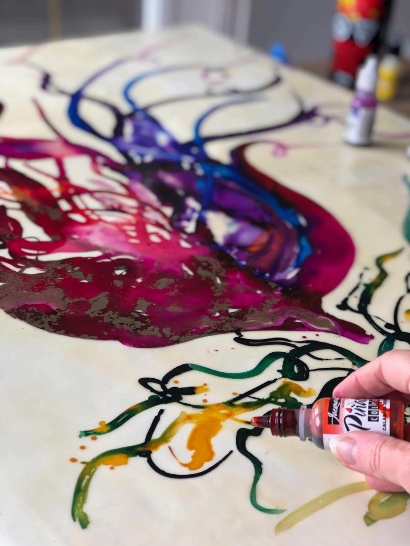 • Try using the inks on Yupo paper as you might use watercolour paints. You can thin the ink with 90-99% ethanol or isopropyl alcohol, or alcohol ink blending solution. Try dropping ink into a small pool of blending solution or alcohol and see what happens.