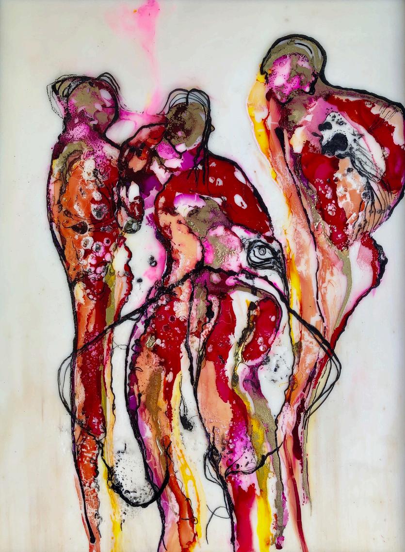 Rise, Like a Phoenix Ink on encaustic 16 x 12 in