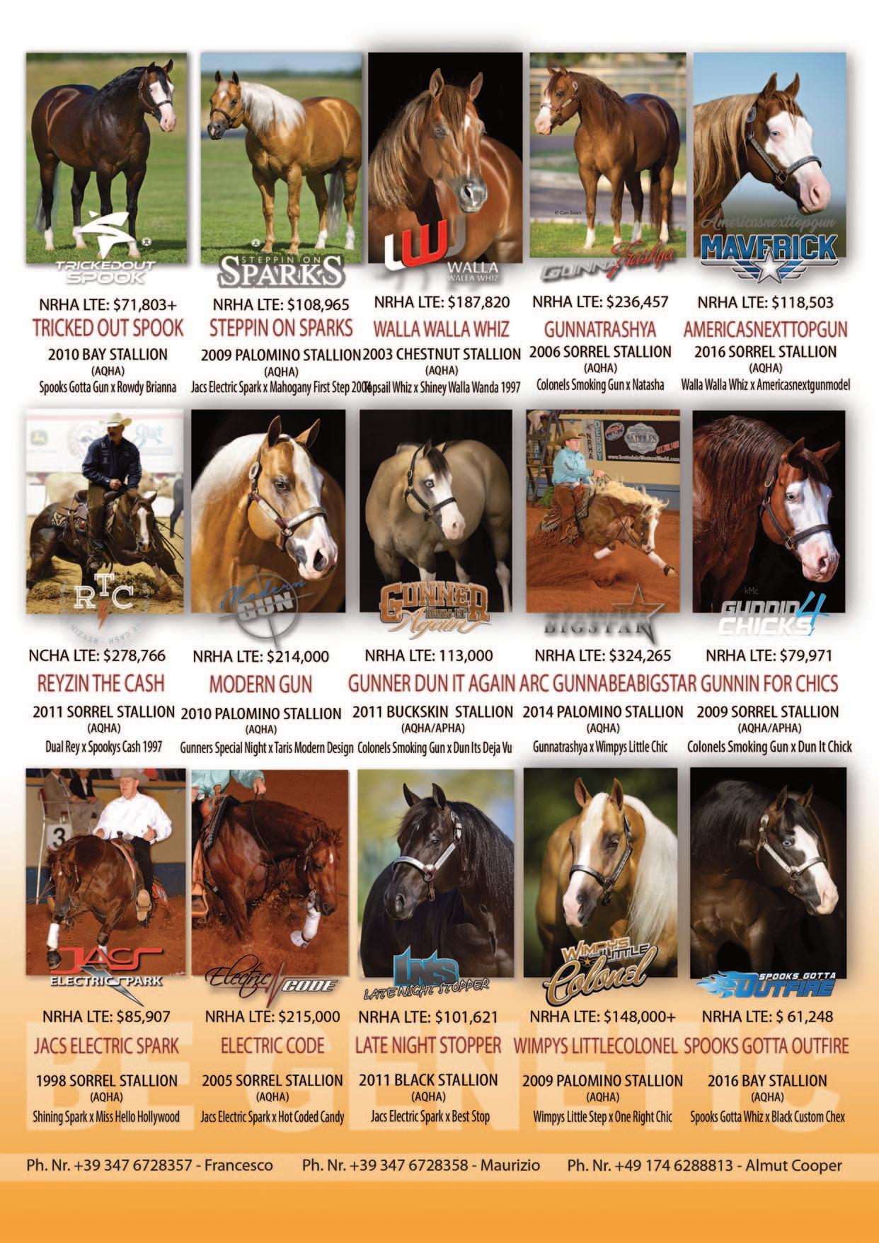 PICCOLO SPANISH - SABATINO QH PL COLONELSMOKING CX - ARIANNA ASPERSI PUREGOLD MASTER - AZIENDA AGRICOLA DANIELE GIACCHE' RICKORY ROOSTER - AMBROSINI QUARTER HORSES RICOCHET ROOSTER - 23QH MANUEL BONZANO SDP JUSTICE IS COMIN - RENZO CANCIANI SLJ SMART DOC - BEATE PLUECKHAN SMART N SPARKIN - GOLDEN PAINT RANCH SMARTINO WHIZ - FRANCESCO MINGARELLI SMOKING TRASH - ENJOY LLC SNAPPERMORRITOBLANCO - MICHELE FICCADENTI SNIP O LUTION - CS RANCH SPARK N WHIZ - FILIPPO DONADEO SPAT A BLUE - CLAUDIO RISSO ROBERTA'S STABLE SPAT OLENA - CLAUDIO RISSO ROBERTA'S STABLE SPATATINO - SARA FABBRI SPOOK A LITTLE - GM RANCH - GILDO E GIULIANO MERCURI SUGAR LITTLE STEP - QUARTER DREAM - PIETRO MARSEGLIA TARISMART - TARISMART SYNDICATE THE COCKED GUN - GM RANCH - GILDO E GIULIANO MERCURI TINKER WITH DREAMS - DIAMOND DUB QUARTER HORSES TINSELTOWNSMOKINGUN - JULIA GAUPMANN TRICKED OUT SPOOK - TOS PARTNERS WALLA WALLA WHIZ - ARCESE QUARTER HORSES WHEEL AROUND PLAY - FEDERICA VICARI WHIZ SHINING STYLE - AZ. AGR. MIRABELLO - ALICE MARINONI WIMPY MARGARITA - AZIENDA AGRICOLA FERRAROL MAURIZIO YANKEE GUN - SOCIETA' AGRICOLA MELE MARCO