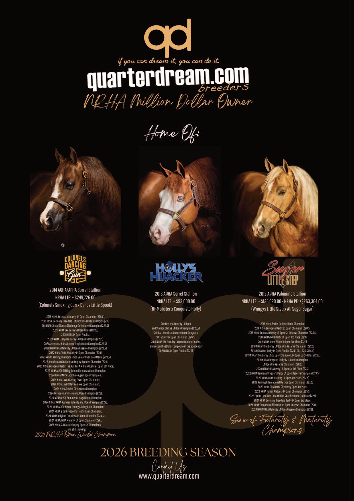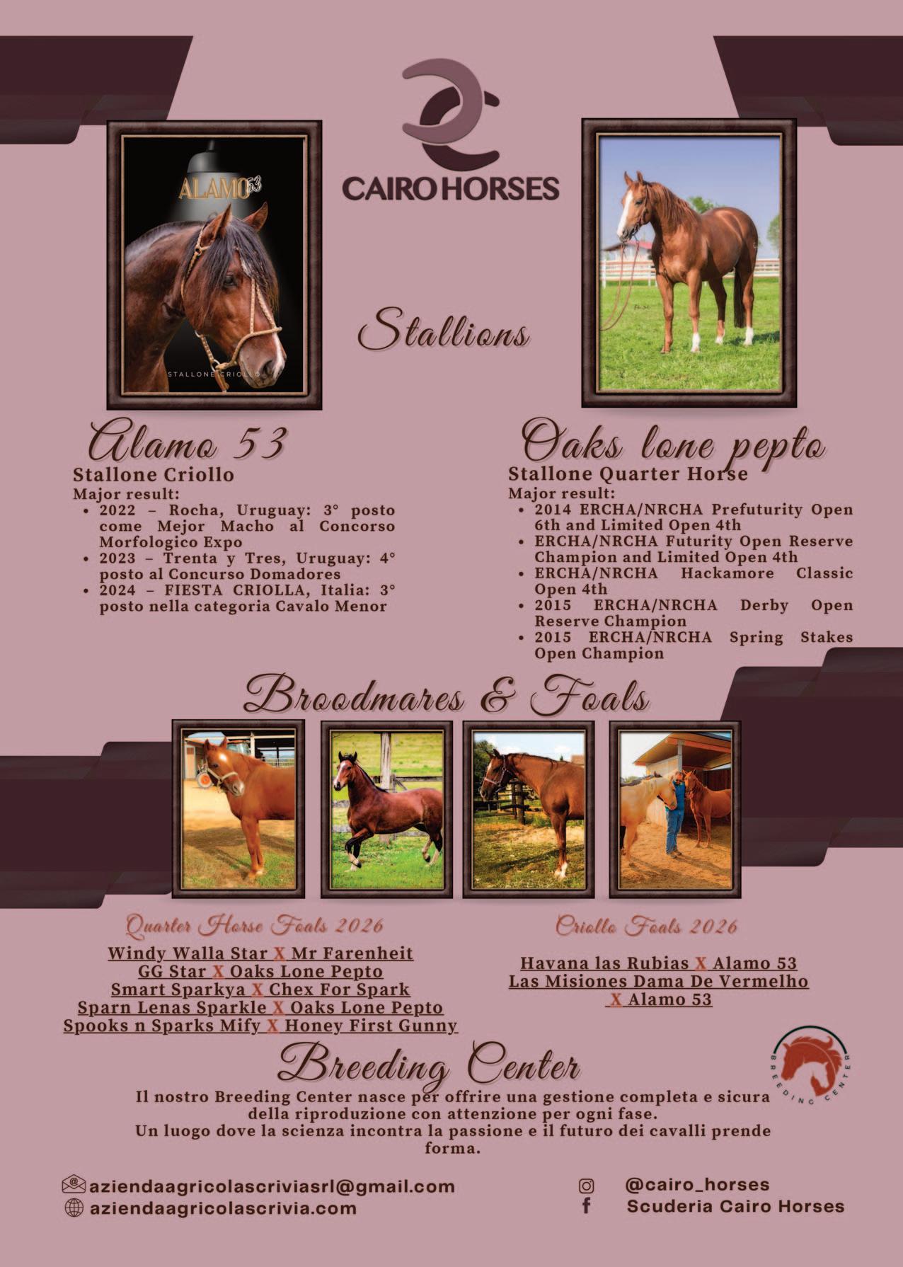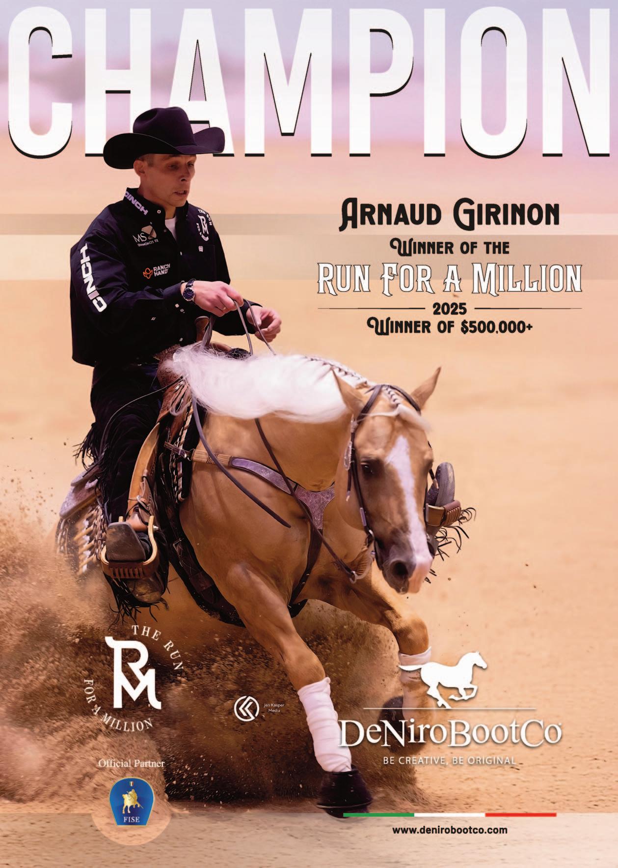 I want to personally thank Eleuterio Arcese, President of the IRHA and member of the NRHA Hall of Fame, for his relentless efforts in securing new partnerships and constantly pushing the standards of reining events higher. My gratitude also goes to the IRHA board members, as well as IRHBA President Pietro Marseglia and his team, for their continued support and for expanding the breeding programs that provide a solid foundation for the future. Our thanks also go to CremonaFiere, our hosting partner, for its ongoing commitment to equestrian excellence and innovation, as well as to our exceptional staff and to my family, especially my wife Loretta, whose unwavering support, love, and dedication - even through difficult moments- have been essential throughout this journey.