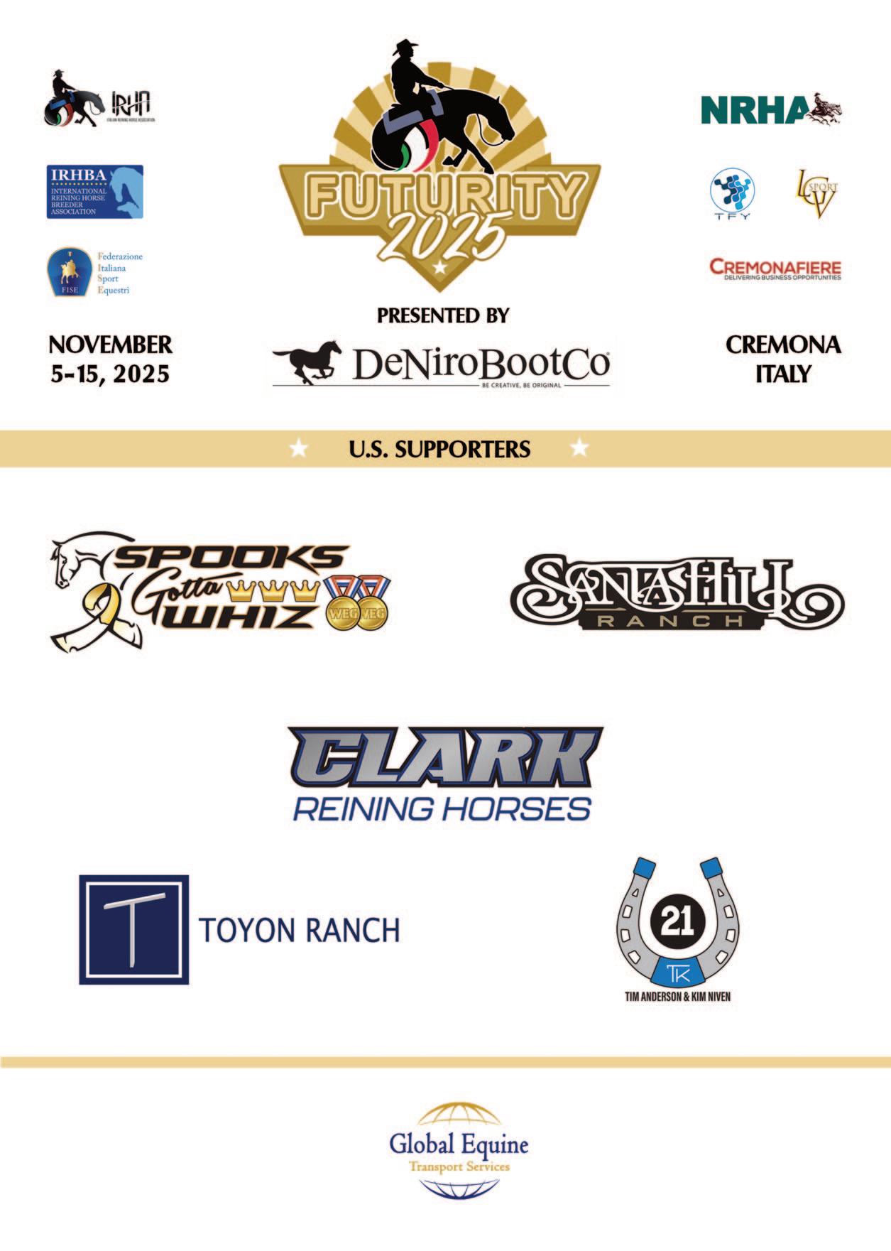 È con sincero entusiasmo che vi do il benvenuto all’IRHA–IRHBA–NRHA Futurity 2025, un evento di riferimento per il mondo del Reining, reso possibile grazie al prezioso sostegno dell’IRHBA, l’associazione degli allevatori che con passione e visione sostiene questa straordinaria disciplina, e all’impegno costante di tutti coloro che credono in questo progetto.