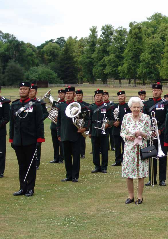 photograph of Her Majesty the Queen, with the Band of the Brigade of Gurkhas, Windsor, 17 June 2022