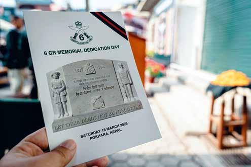The main event of the year was undoubtedly the dedication of our Regimental Memorial in Pokhara on 18 March. This had been a huge undertaking over many years since the original concept of John Mackinlay. It is the most beautiful memorial to everyone connected with the Regiment in its 177 years of service to the Crown; those who served, the families who supported them and the many attached personnel. We owe a huge debt of thanks to all who contributed time, effort and money to make it possible, but particularly to Mike Channing and his team in UK, Gopalbahadur Gurung and his team