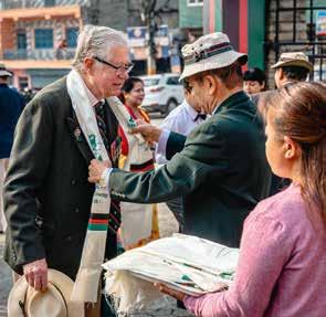 in Nepal and, in the final weeks, to Purnabahadur Gurung as Project Manager and his team in Pokhara. Interestingly, many of us learned for the first time, despite our many years’ service, that many of our veterans follow the Bon religion and so the blessing for the Memorial was done by a Bon Priest as well as a Hindu Bahun, a Buddhist Lama and a Christian Minister. The attendance from our veterans and families was wonderful and the subsequent reunion in the grounds of the British Gurkha Camp Pokhara was just marvellous. It was such fun to meet up with so many old friends, including from the Nepal Cup team, shown in the picture, where I had the happiest of times while serving in the Regiment. Although fully reported on elsewhere, I could not fail to mention such a fundamentally important and wonderful day in the history of our Regiment.