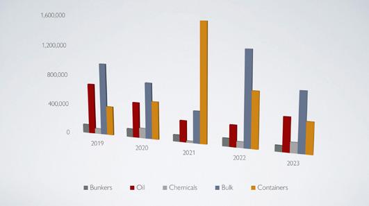 And the number of containers is lower than last year but, after bulk cargo, still represents the most significant category with ISU members providing services to vessels carrying 30,000 TEU amounting to some 400,000 tonnes of cargo.