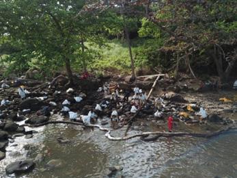 Movement required navigating waters aboard small boats and was further complicated by unpredictable weather and the presence of crocodiles and snakes adding to the challenges of the cleanup operation.
