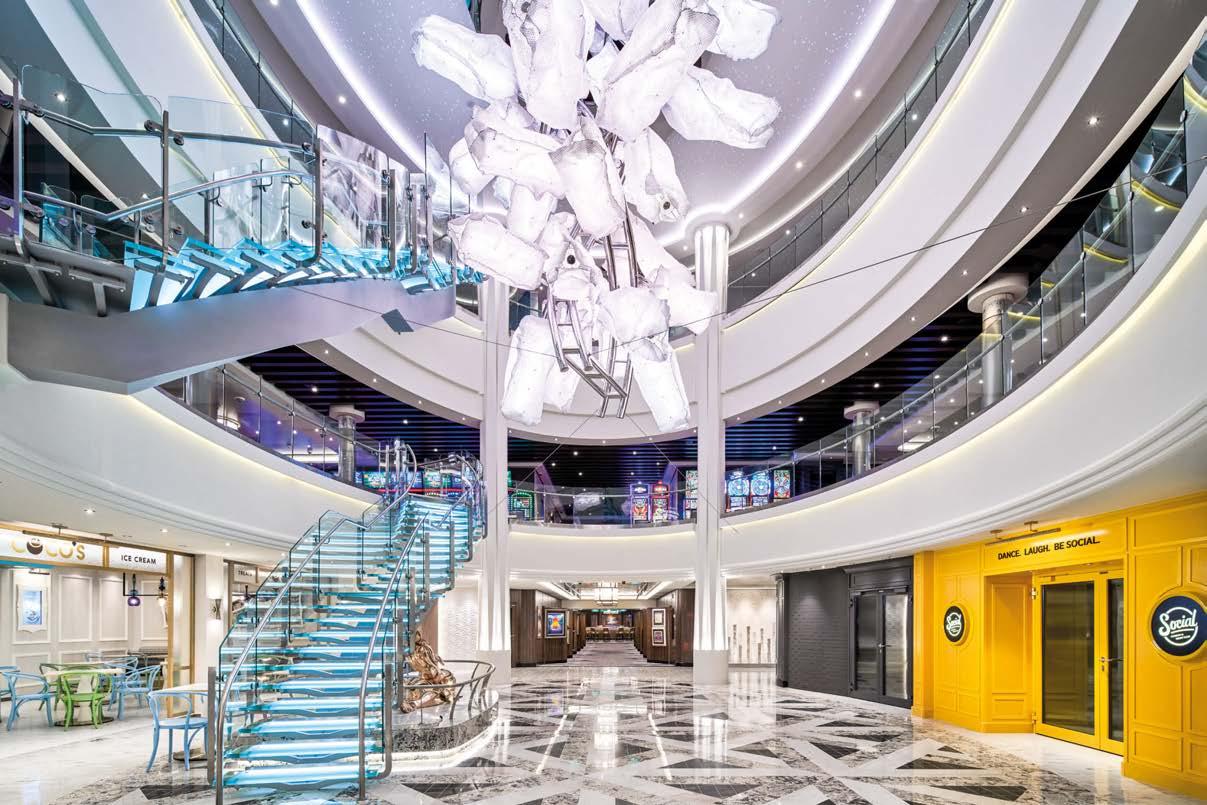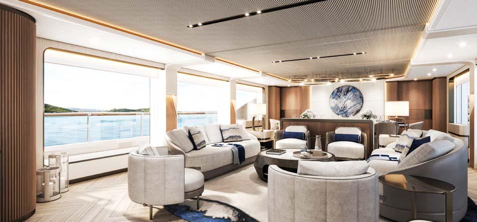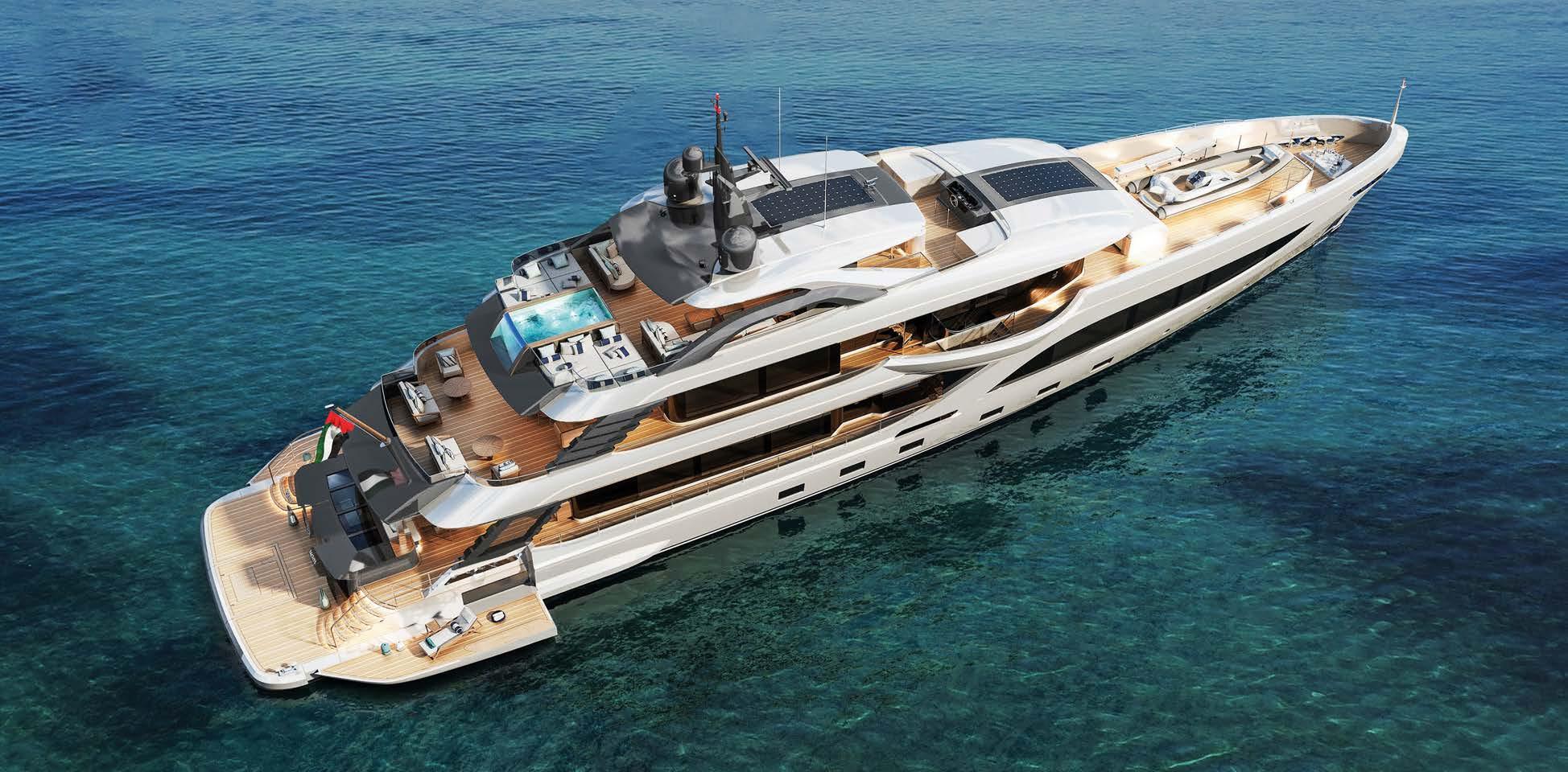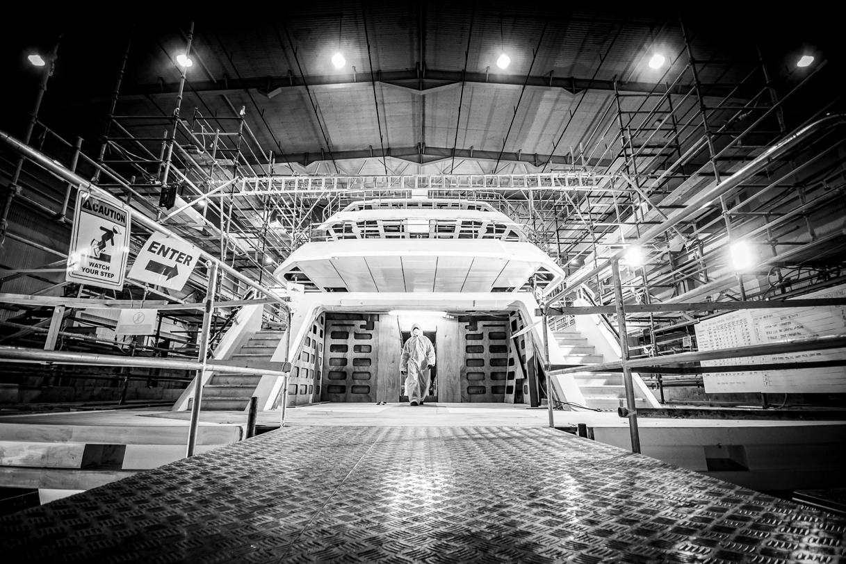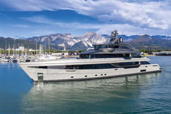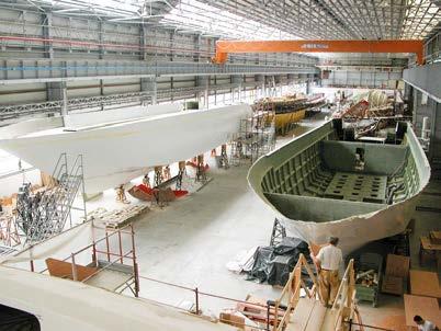 Construction continues on the 70-metrelong Project Thunderball pleasure ship, being built from steel and aluminium. This project represents the expertise and design and construction quality of the CRN shipyard, the experience of t e r a ar te t ra fir a t e creativity of the Nauta Design studio, which developed the interiors.