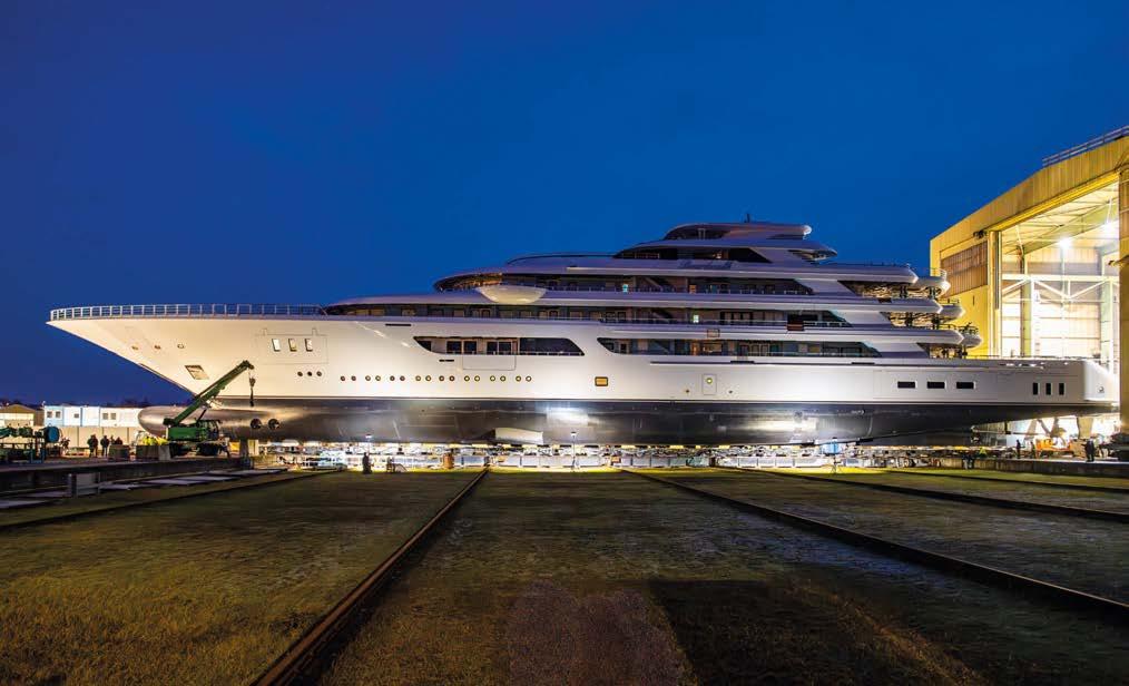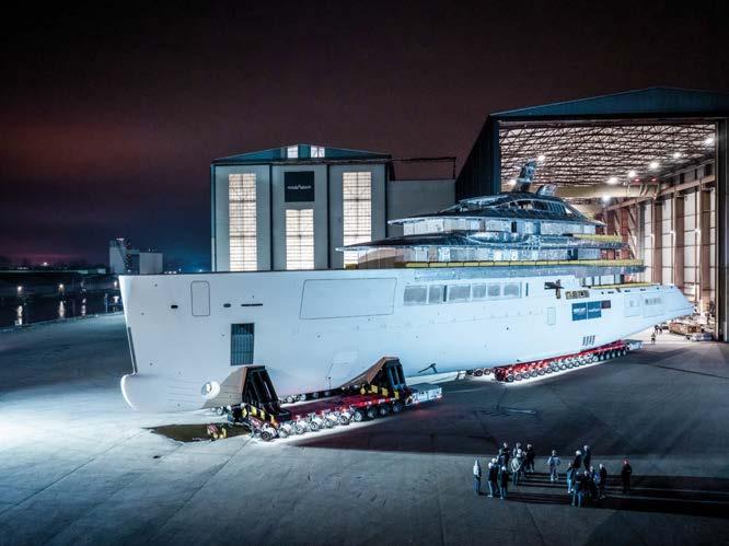 Oceanco has moved the hull of project Y729 from its construction facilities in wijndrecht to lblasserdam for out tting. fter assembling and pre- tting the steel hull and aluminium superstructure, Y729 is now entering the nal stages of construction ahead of its launch.