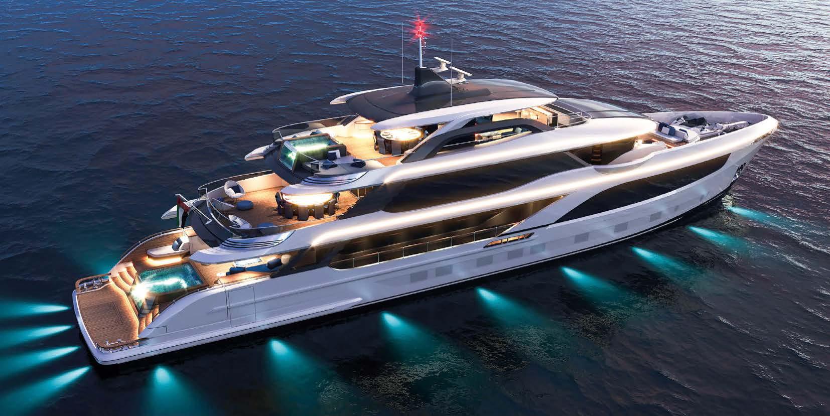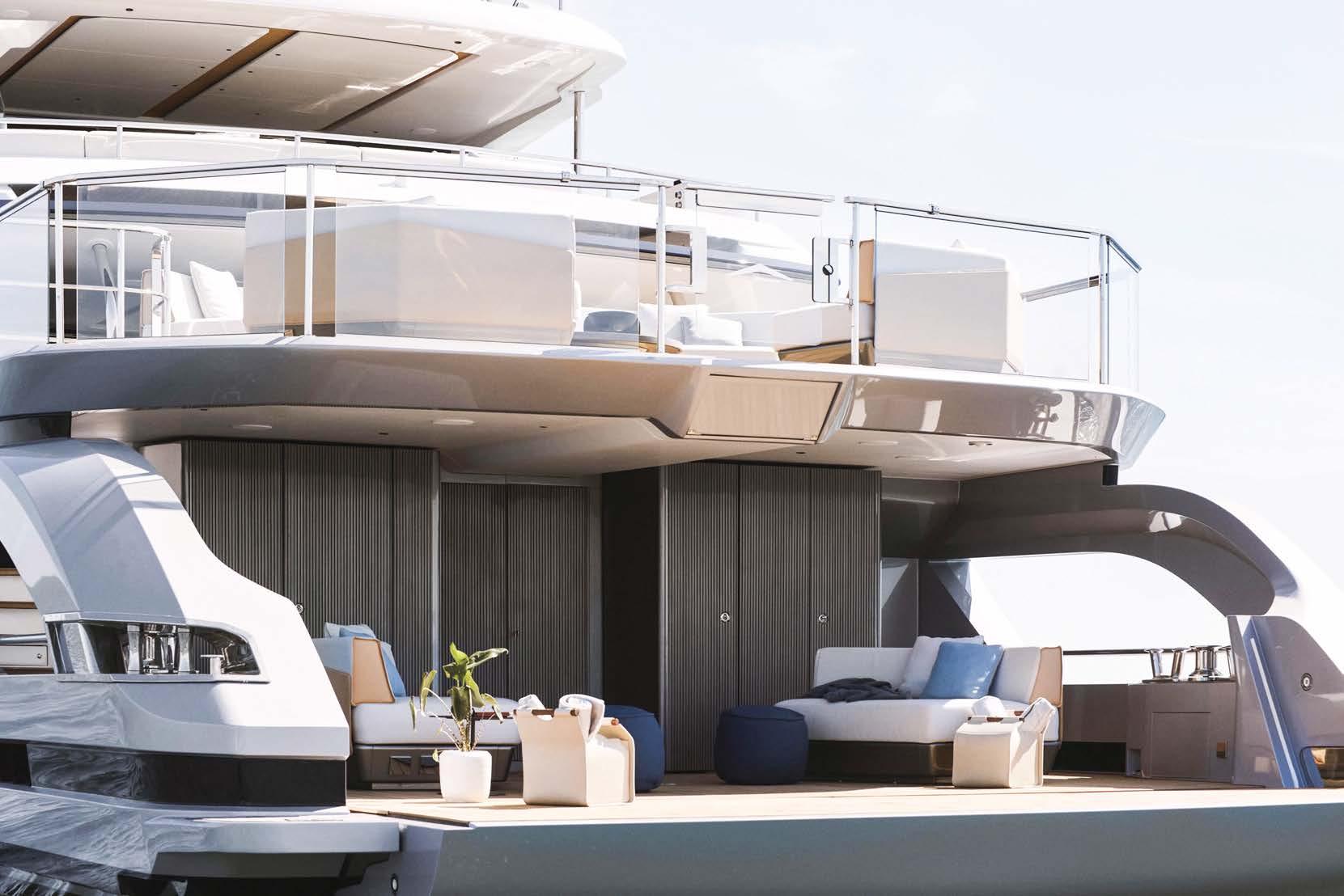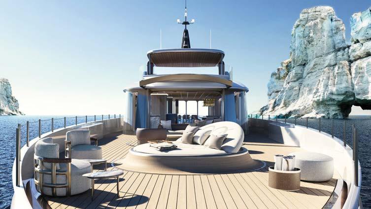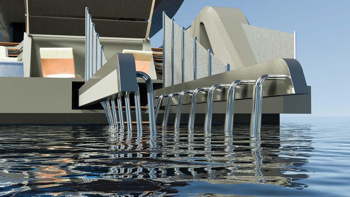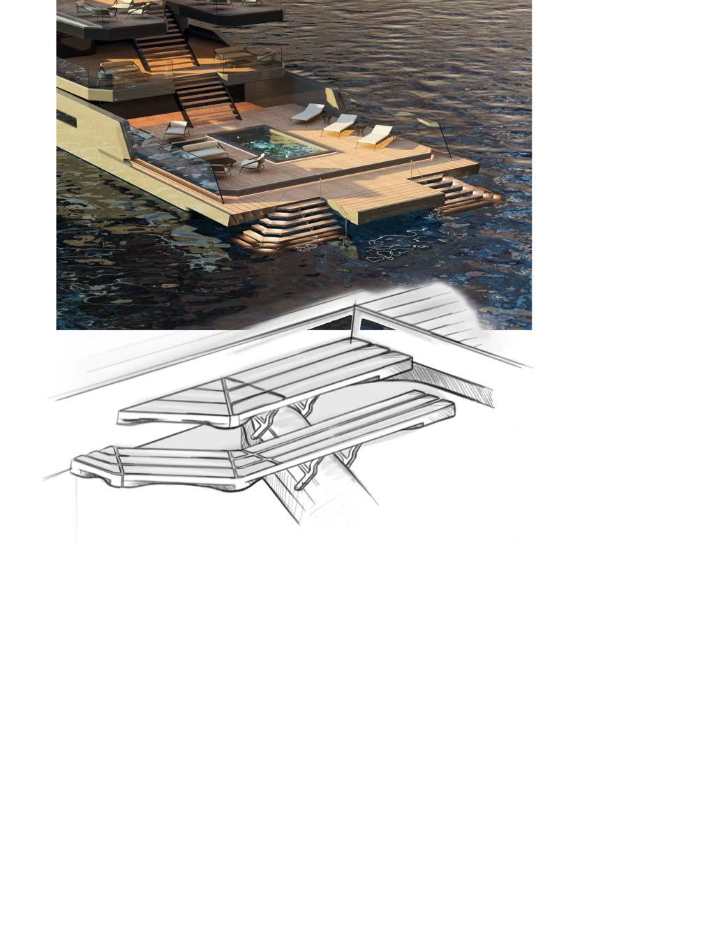 BOARDWALK, DISEGNATO DA FRANK WOLL E AMY HALFFMAN, È STATO PROGETTATO COME UN RIFUGIO PER FAMIGLIE SULL’ACQUA. OFFRE AMPI PONTI E MOLTE AREE DI INTRATTENIMENTO, OLTRE A NUMEROSE FUNZIONALITÀ, COME UNA PALESTRA, UN PUTTING GREEN E DUE ELIPORTI. BOARDWALK, DESIGNED BY FRANK WOLL AND AMY HALFFMAN, WAS CONCEIVED AS A FAMILY RETREAT ON THE WATER. IT OFFERS SPACIOUS DECKS AND MANY ENTERTAINMENT AREAS, AS WELL AS NUMEROUS AMENITIES, SUCH AS A GYM, A PUTTING GREEN AND TWO HELIPADS.