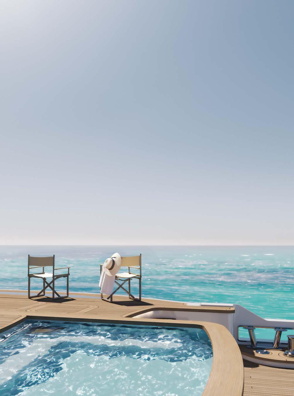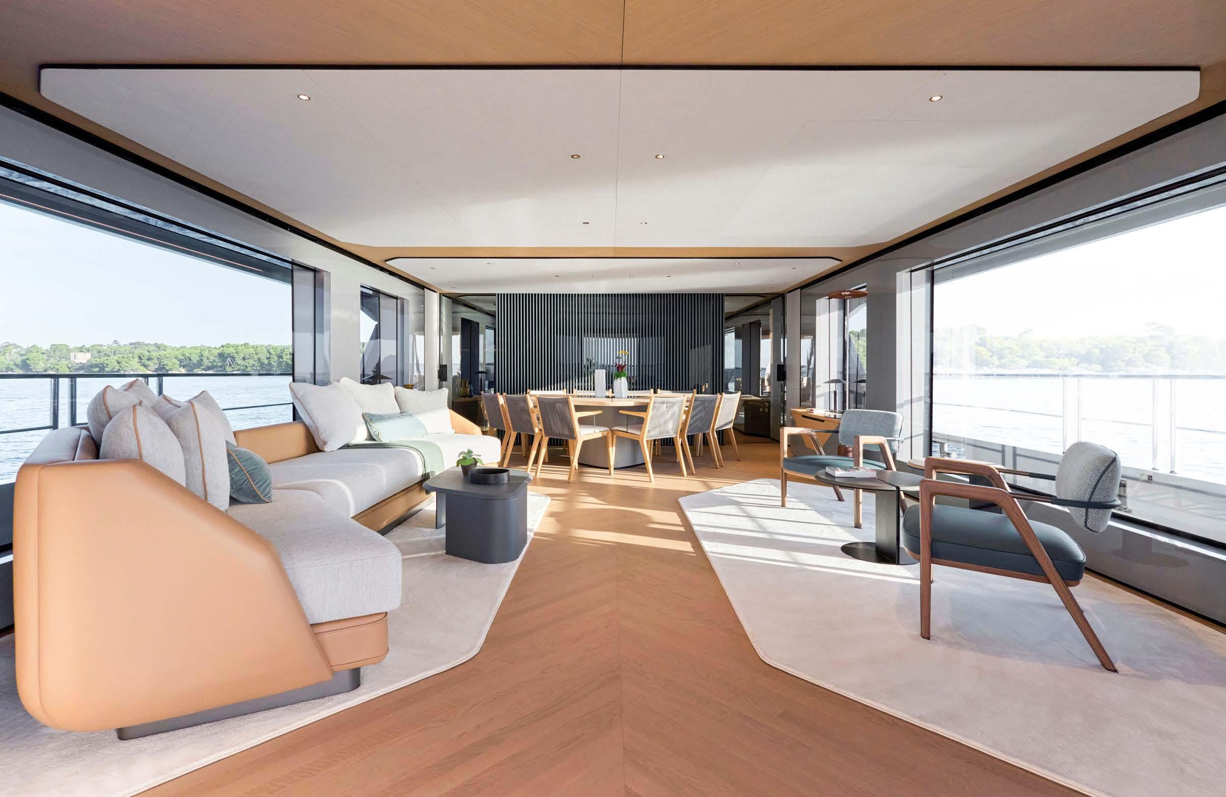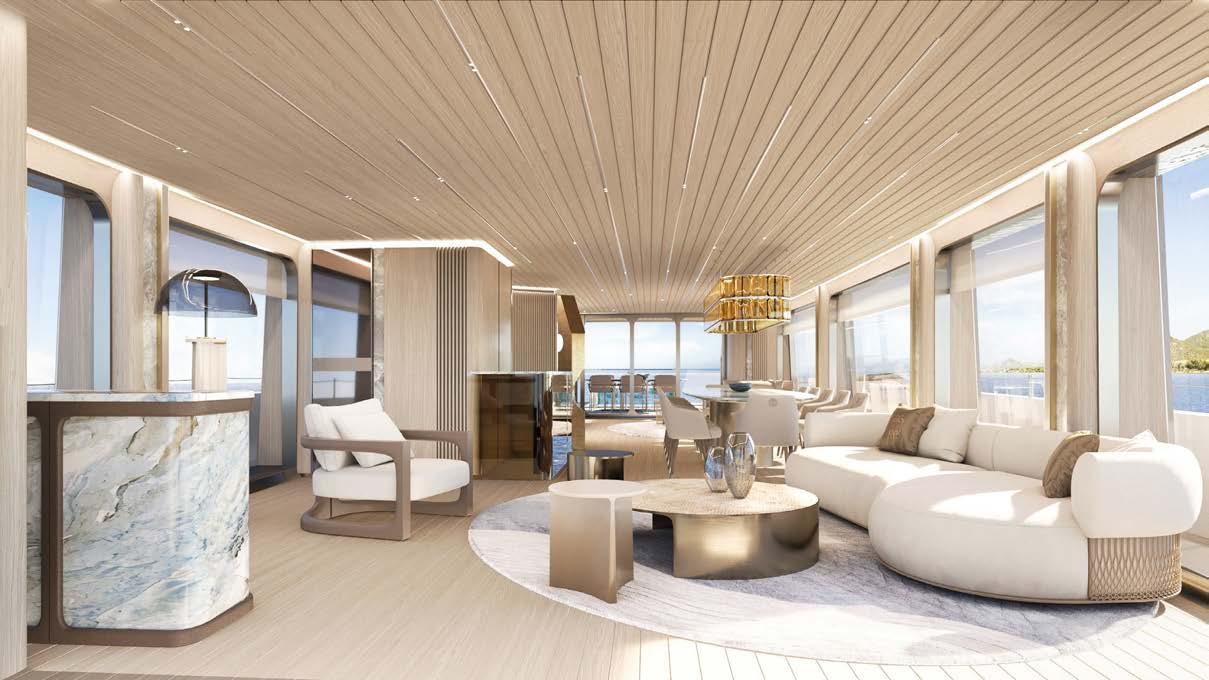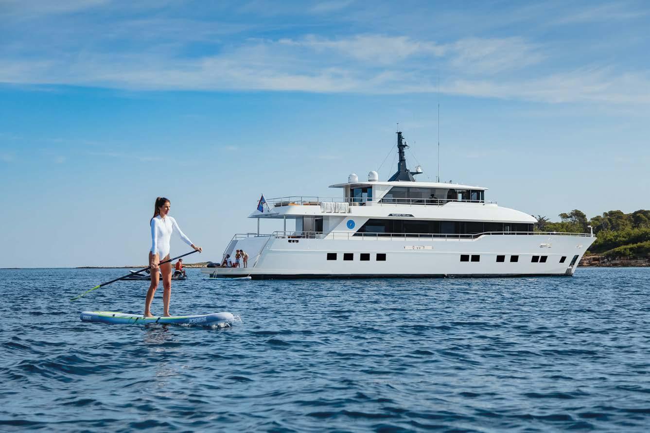 BOARDWALK, DISEGNATO DA FRANK WOLL E AMY HALFFMAN, È STATO PROGETTATO COME UN RIFUGIO PER FAMIGLIE SULL’ACQUA. OFFRE AMPI PONTI E MOLTE AREE DI INTRATTENIMENTO, OLTRE A NUMEROSE FUNZIONALITÀ, COME UNA PALESTRA, UN PUTTING GREEN E DUE ELIPORTI. BOARDWALK, DESIGNED BY FRANK WOLL AND AMY HALFFMAN, WAS CONCEIVED AS A FAMILY RETREAT ON THE WATER. IT OFFERS SPACIOUS DECKS AND MANY ENTERTAINMENT AREAS, AS WELL AS NUMEROUS AMENITIES, SUCH AS A GYM, A PUTTING GREEN AND TWO HELIPADS.