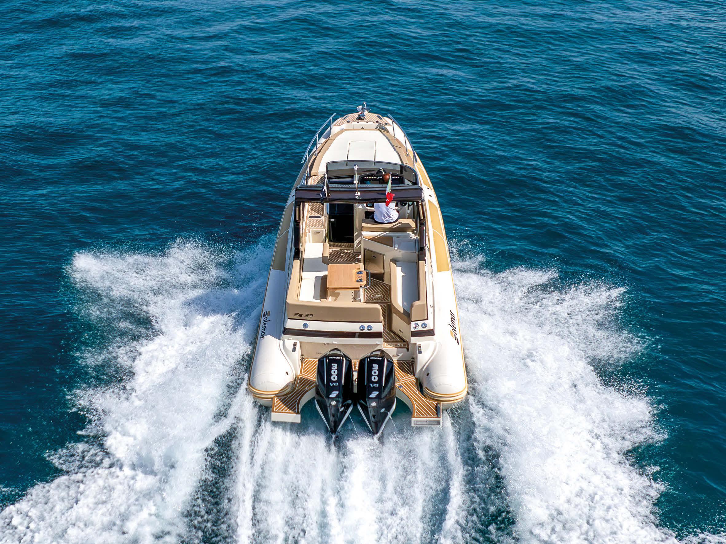 Il maxi rib Marlin 33 è un natante con una lunghezza fuori tutto di 10 metri e una lunghezza d’omologazione di 9,30. La lunghezza interna, dal tubolare di prua allo specchio di poppa, è di 8,75 metri. Motorizzato con due Mercury Verado di 300 cavalli ciascuno, consente una