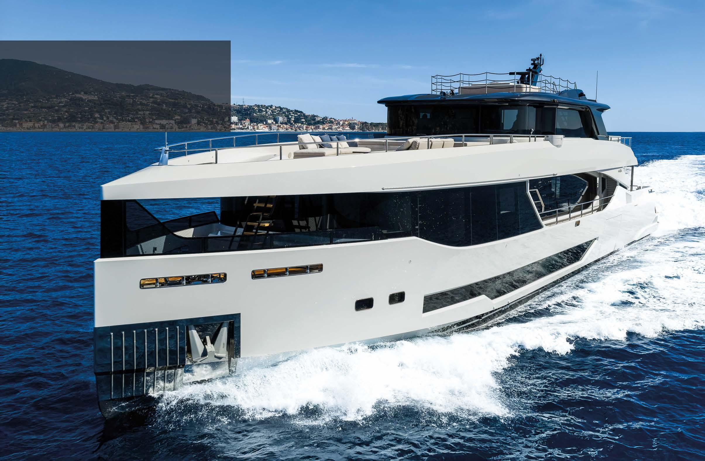 Anno 2020, LOA: 29,06 m, Larghezza: 6,76 m, 2 x M T U 16V 2000 M86, 5 cabine, 10 ospiti + 3 cabine equipaggio. € 7.300.000 Iva pagata. u Forwardyachts S.r.l.