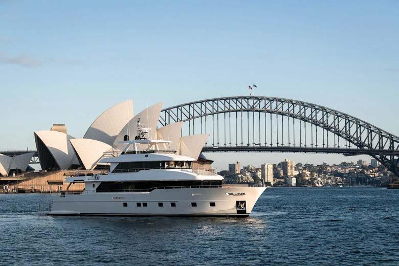 LOA: 25.7m, Beam: 7.09m, Cabins: 4, Guests: 7