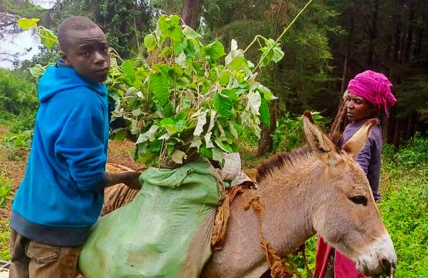 Ruth Kimunto plays a vital role ensuring that the trees reach their new home, “The initiative employs my donkeys to transport trees to locations inaccessible to tractors,” she explains. “Through the income generated from this service, I have been able to fulfil essential obligations such as paying rent and paying for my three children’s education.”