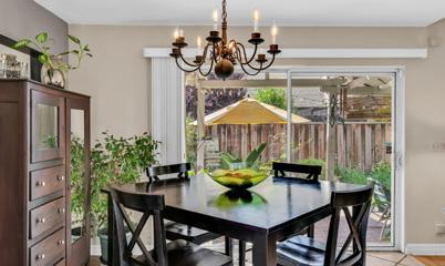 Tucked into a serene, tree-lined street, this charming contemporary gem invites you to experience comfort, connection, and California lifestyle at its best. Inside, you’ll be greeted by soaring vaulted ceilings and expansive windows that flood the open-concept living area with natural light. Whether cozying up near the wood-burning fireplace or hosting friends in the open living/dining space, you’ll love how this layout lives. The spacious primary suite offers true retreat vibes—with high ceilings, a generous walk-in closet, and an ensuite bath with dual vanities. Additional bedrooms are perfect for family, guests, or remote work. Step outside to your private backyard oasis: a covered patio, garden beds bursting with blooms, a fenced dog run, and lush landscaping that attracts hummingbirds, butterflies, and peace of mind. Can you feel the Zen? Modern touches like luxury vinyl plank flooring, smart home features, and ceiling fans make this home move-in ready, while the central location close to shopping, highways, and top-rated schools makes life easy. And with NO HOA, you can truly make this home your own.