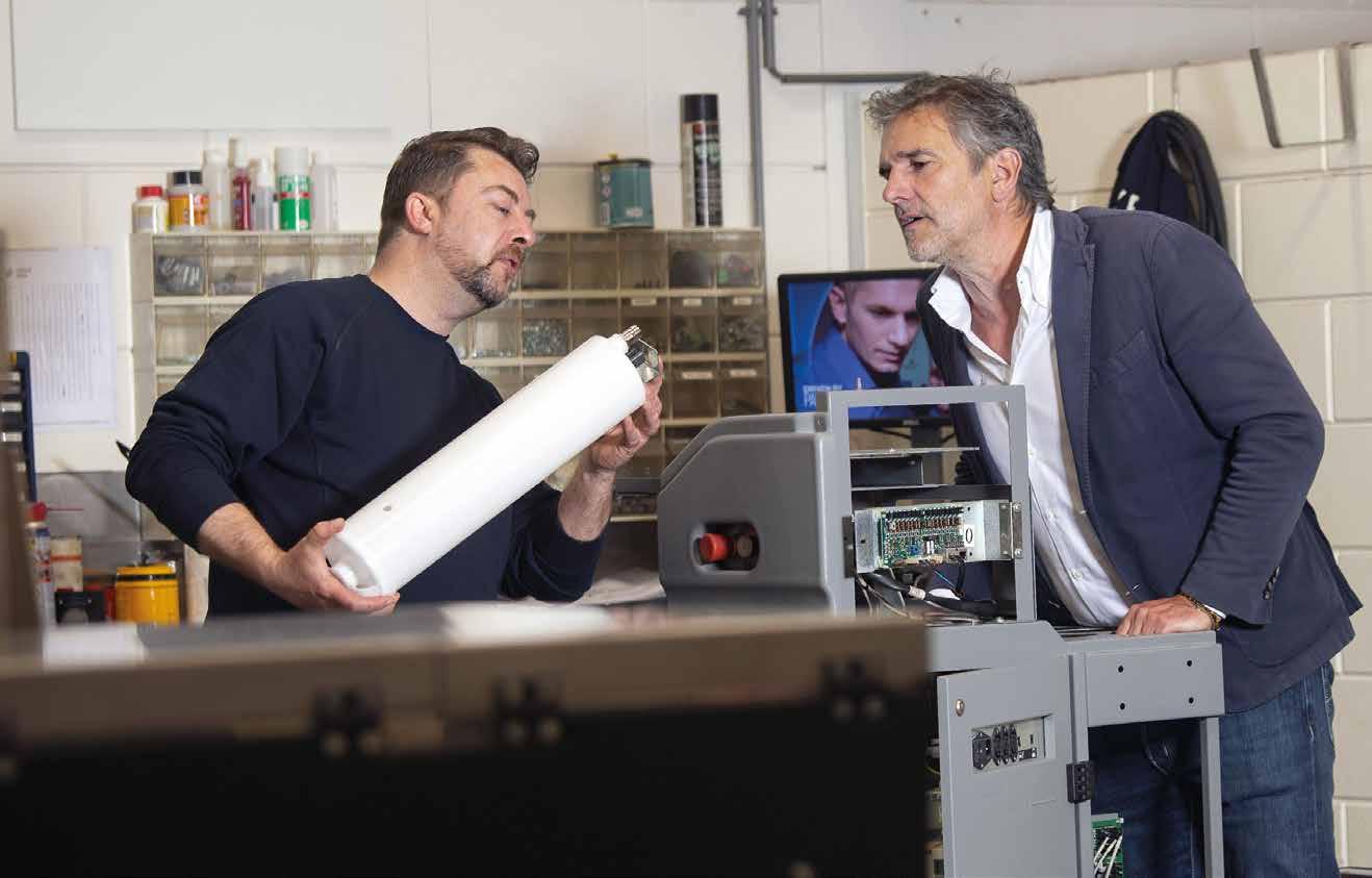 klant, vertelt Bas. “Zowel in Nederland als in Engeland en Frankrijk werken we samen met de grootste retailers. Soms is de relatie zo hecht dat we een gezamenlijk team optuigen om innovaties aan te jagen. De Kleurentester is daarvan een goed voorbeeld: een Eskens innovatie die we samen met de klant hebben doorontwikkeld. Mensen kunnen daarmee hun favoriete muurkleur thuis uitproberen. De populaire kleuren zijn vaak al afgevuld, maar de miniroller past ook onder de verfmengmachine, dus specifieke klantkleuren zijn ook mogelijk en dat is echt uniek. In de nabije toekomst zal digitalisering daarin een nog grotere rol gaan spelen, want dan scan je een kleur, die vervolgens ter plekke wordt uitgelezen en gemengd. Een ander voorbeeld is de menginstallatie die wij speciaal voor de Rituals Conceptstores hebben ontwikkeld. Klanten kunnen hiermee hun eigen shampoos samenstellen. De Rituals winkelmanager is verantwoordelijk voor de beleving daaromheen, wij voor de techniek.”