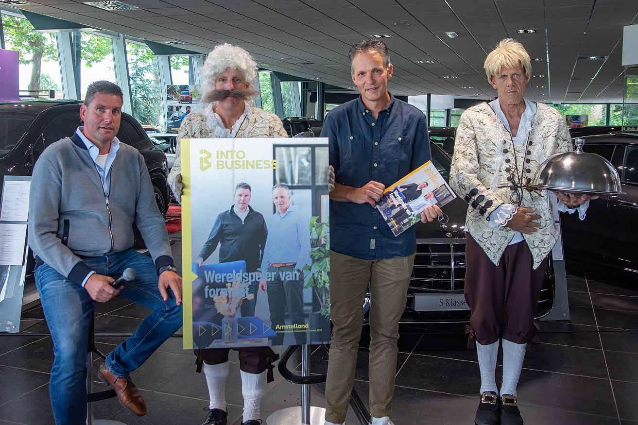 Begin juli van dit jaar werden de INTO business-edities De Venen en Amstelland gezamenlijk gelanceerd. Het thema van die magazines had te maken met grensverleggend ondernemen. Zo’n gezamenlijke lancering paste daar dan ook perfect bij. De setting was de prachtige showroom van Gomes in Aalsmeer, waar de autoliefhebber niets tekort kwam. Maar ook de netwerker en de culinaire levensgenieter haalden hun hart op, want met zo’n 130 aanwezige ondernemers en heerlijke hapjes van On The Rock, was ook dat goed geregeld. Marco Schuurman van Eyecatcher ontving het eerste exemplaar van de editie De Venen en Arjan Kok en Marco Braam van Bosman Van Zaal deden dat namens Amstelland.