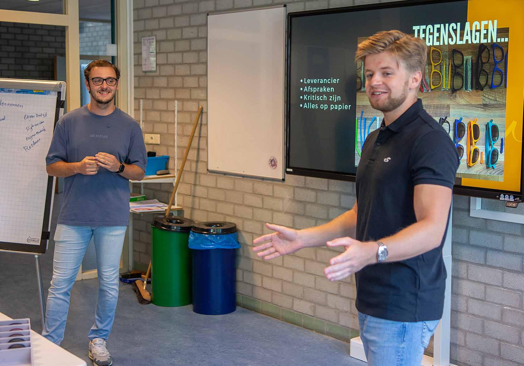 Het verhaal van de twee jonge ondernemers past perfect in het nieuwe havo praktijkvak, waar het VeenLanden dit jaar mee is gestart als onderdeel van een pilot van de overheid. Dit betekent dat ten opzichte van vorig jaar de IBC lessen en de eigen ondernemerservaringen ook gaan meetellen als een volwaardig havo examenvak. Het VeenLanden college loopt hiermee voorop, want over 2 jaar wordt de praktijkvak havo landelijk ingevoerd. Ruben en Alain bieden voor het havo praktijkvak naast deze inspirerende workshop ook later in het schooljaar hun diensten aan. Een deel van de leerlingen zal namelijk aan de slag gaan met een voor EveryWear actueel business vraagstuk, waar zij van Ruben en Alain ook feedback op krijgen. Heeft u ook zo’n opdracht voor de leerlingen? Waar mogen de leerlingen van de IBC-klas over meedenken? Welk probleem zou jij graag opgelost zien door jonge mensen? Docenten Jeroen Vis en Patrick Fränzel komen graag met ondernemers uit de regio in contact voor leuke en inspirerende praktijkopdrachten.