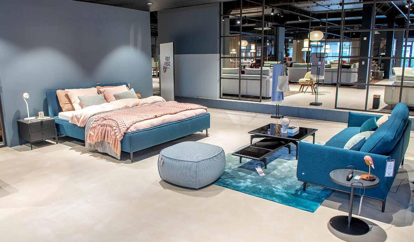 In Benthuizen timmert Corné al jaren flink aan de weg met Van Waay Interieurs. Daar heeft hij ook een presentatie van Rolf Benz, maar wel een stuk kleiner. “In Mijdrecht hebben we echt alles staan. Soms heb ik van één type bank wel twee of drie exemplaren staan. Dit is het Rolf Benz Experience Center. Hier zie je het, hier beleef je het!
