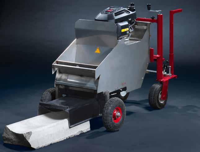 Curbing?! Als ik de opdracht krijg om over Curbing Holland te schrijven, weet ik in eerste instantie niet goed wat ik me erbij moet voorstellen. Maar ter plekke in de showroom van Grijs Beton Design en Curbing Holland aangekomen, krijg ik al snel opheldering. Eigenaren Agnes en Michel Kappe en hun zoon Brent nemen me mee naar de werkplaats waar hun nieuwste machine staat. “Een uit de kluiten gewassen maaimachine”, lachen ze, “maar wel volledig emissievrij en handzaam om zo’n 50 –100 m1 aan lijnvormige beton- en stoepranden per dag op locatie te kunnen verwerken.”
