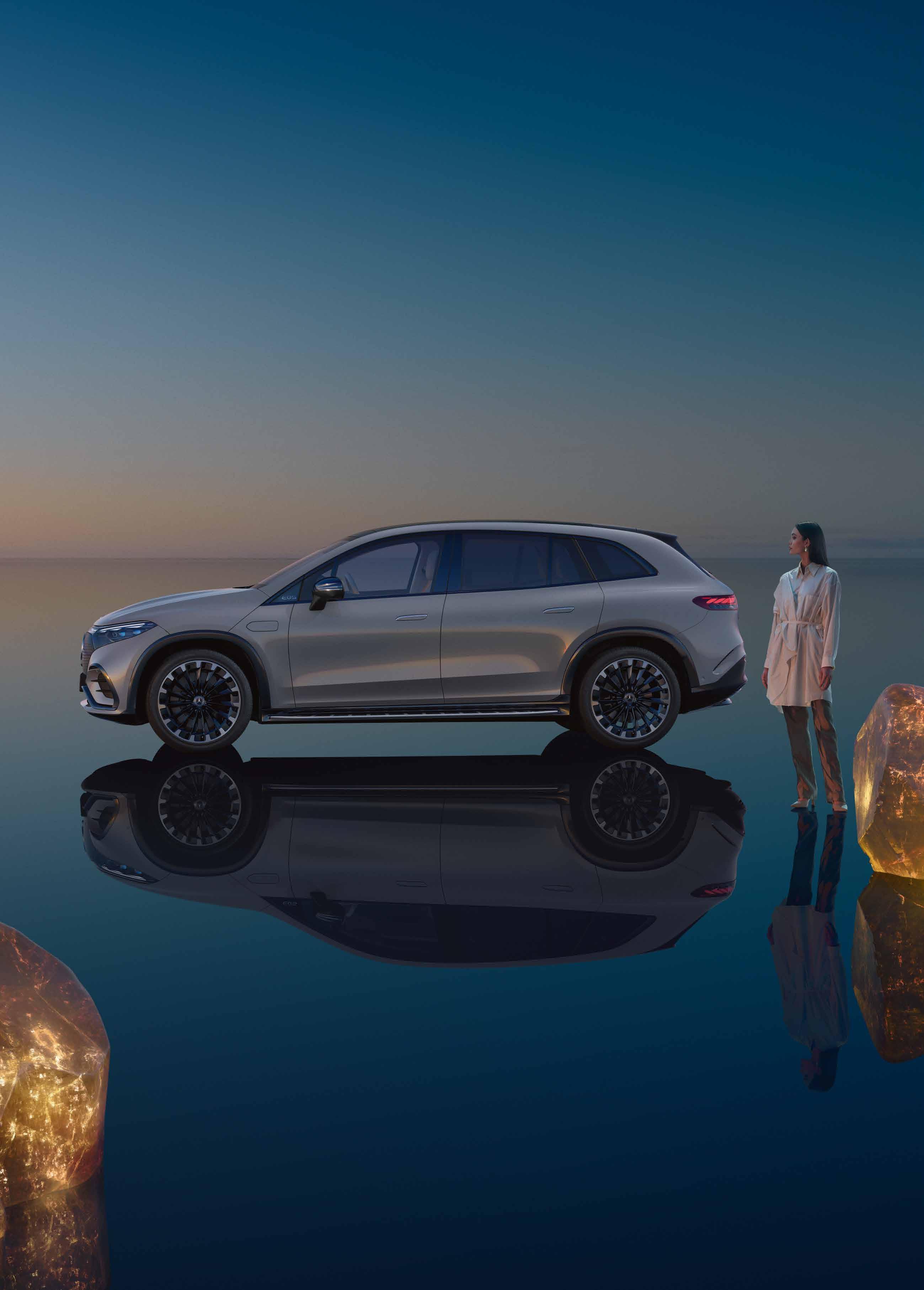 De introductie van de EQS SUV luidt een nieuw tijdperk van luxueus elektrisch rijden in. Iconisch Mercedes-EQ design en een aerodynamisch geoptimaliseerde vorm vinden elkaar in deze ruime SUV. Zo groot kan elektrische perfectie zijn.