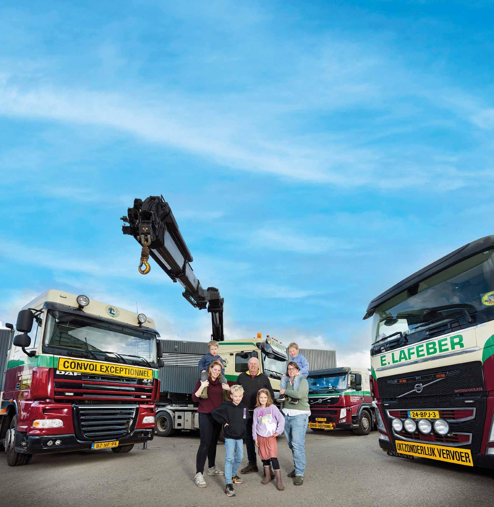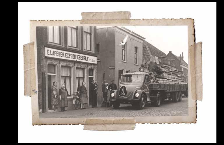 Het bedrijf is ontstaan in 1820 en droeg toen nog de naam Lafeber Vrachtvervoerder. Via het water kwamen allerlei goederen Gouda in. Er werd niet op elke plek gestopt. Lafeber, een sterke man, tilde de zakken met onder andere kolen en graan van de boot en ging die zakken vervolgens met een hond en een slee naar de huizen brengen. Dat was het begin van het transport. Al snel werd de slee vervangen door een kar, voortgetrokken door een hond. Weer later maakte Lafeber gebruik van een paard en wagen. Relatief snel belandde het transportbedrijf in het autovervoer. Ook het groter materieel, het zwaar transport, deed zijn intrede. Oude Goudse bedrijven, zoals de Goudse machinefabriek en sinds 120 jaar geleden BAM, maakten gebruik van de diensten van E. Lafeber. Iris en Martine kwamen in 2016 in het bedrijf werken. Zij hadden dat best eerder gewild, maar hun vader wilde dat ze eerst iets buiten het bedrijf zouden doen. Martine heeft altijd in het ziekenhuis gewerkt. Iris rondde een hbo-opleiding met economische achtergrond af en ging daarna als beleidsmaker en voor de uitruk aan de slag bij de brandweer. In 2019 hebben ze de aandelen overgenomen. Iris heeft twee zoons: Fitz (7 jaar) en Tjeu (4 jaar). Martine heeft een dochter van 6 (Freke) en een zoon van 3 (Gijs). Het is dus niet uitgesloten dat het bedrijf ooit geleid zal worden door de achtste generatie, maar ze zijn nu nog veel te jong om daar mee bezig te zijn.