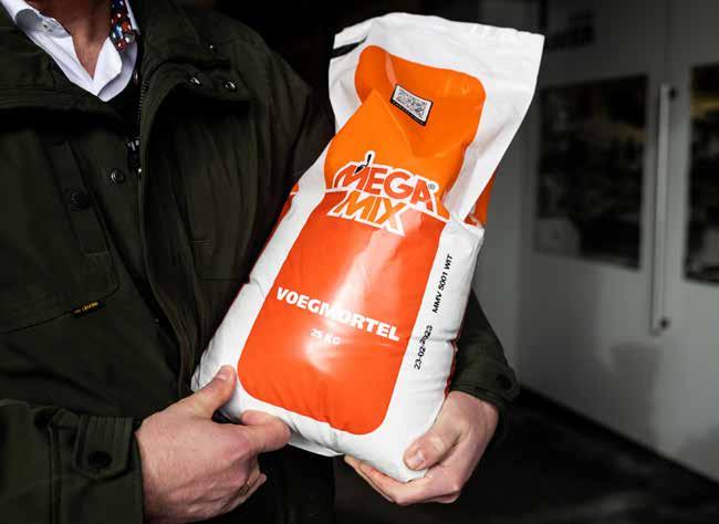 innovatieve systemen en door de samenwerking met de Coöperatie MegaMix is het afzetgebied om mooie duurzame mortels te leveren uitgebreid tot heel Nederland en België. Investeringen in innovatie hebben geleid tot een veelzijdig aanbod van producten. “Complexere MegaMix-producten, zoals mortels op kleur, egaline en kalkmortel, worden alleen in Gouda gemaakt. Niet alleen in diverse maten silo’s, maar ook in bigbags en in PE-zakgoed.”