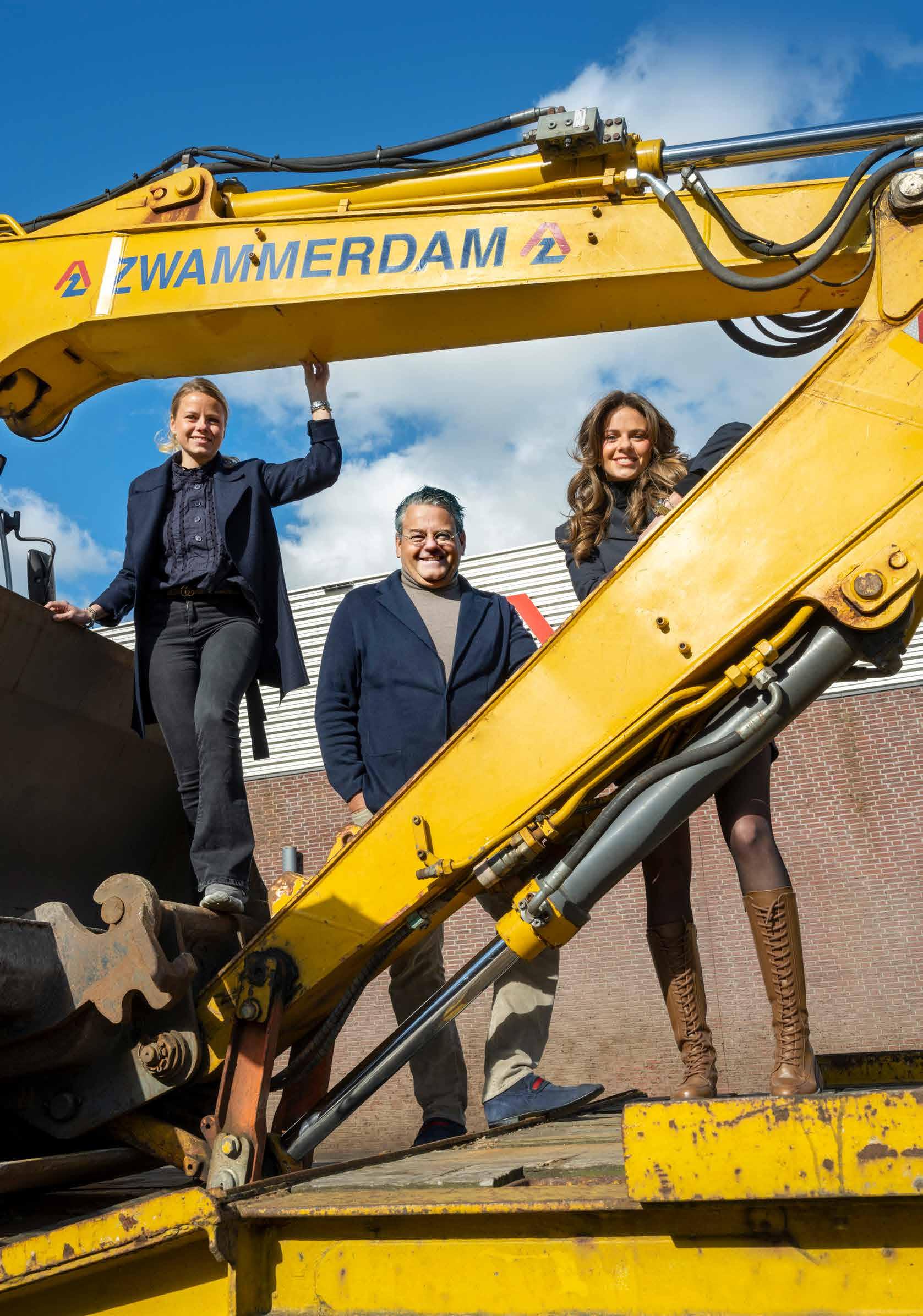 Langs de N11 lichten de grote rood-blauwe letters vertrouwd en uitnodigend op. Zij wijzen de weg naar de vestiging van Zwammerdam Groep in Bodegraven, het bedrijf dat zich sinds 1963 specialiseert in grondwerk en wegenbouw. René Geelhoed behoort tot de derde generatie die aan het roer staat van dit mooie familiebedrijf, dat al zestig jaar geworteld is in deze regio. Nu het diamanten jubileum gevierd wordt, dient zich de vierde generatie aan met dochters Marjorie en Rosalie. Of er voor hen een toekomst in het bedrijf is weggelegd, is volgens vader René nog geen gelopen race: “Dit is een kapitaalintensief bedrijf waar het ondernemerschap niet over geplaveide wegen gaat. Dat moet je echt wel héél leuk vinden om de stap te wagen.”