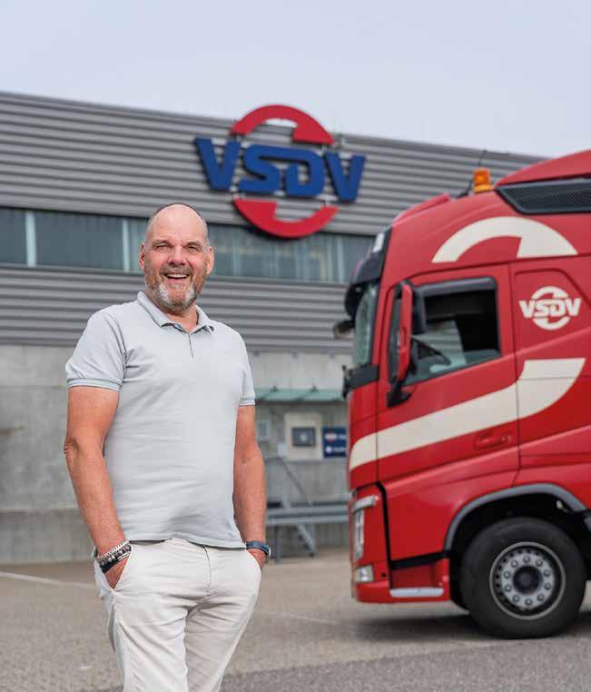werken in het bedrijf, net als een aantal van hun kinderen, partners van hun kinderen en daar weer familie van. Alle in VSDV werkzame kinderen volgen een coaching traject. “Dat helpt hen om te bepalen of ons bedrijf op een dag voor hen als eigenaar de toekomst is. Voor mij is het in elk geval belangrijk dat onze opvolgers het bedrijf altijd op de eerste plaats zetten. Een transportbedrijf leiden is namelijk zeer intensief. Het vraagt om scherpte en alertheid. Je moet er altijd bovenop zitten. Bovendien zit de toekomst vol onzekerheden. Denk aan de stijgende kosten, maar ook wat duurzaamheid betreft liggen de kaarten voor ons vak nog niet open op tafel. Ik omarm duurzaamheid, maar wie zegt mij dat investeren in elektrische vrachtwagens een goede zaak is?