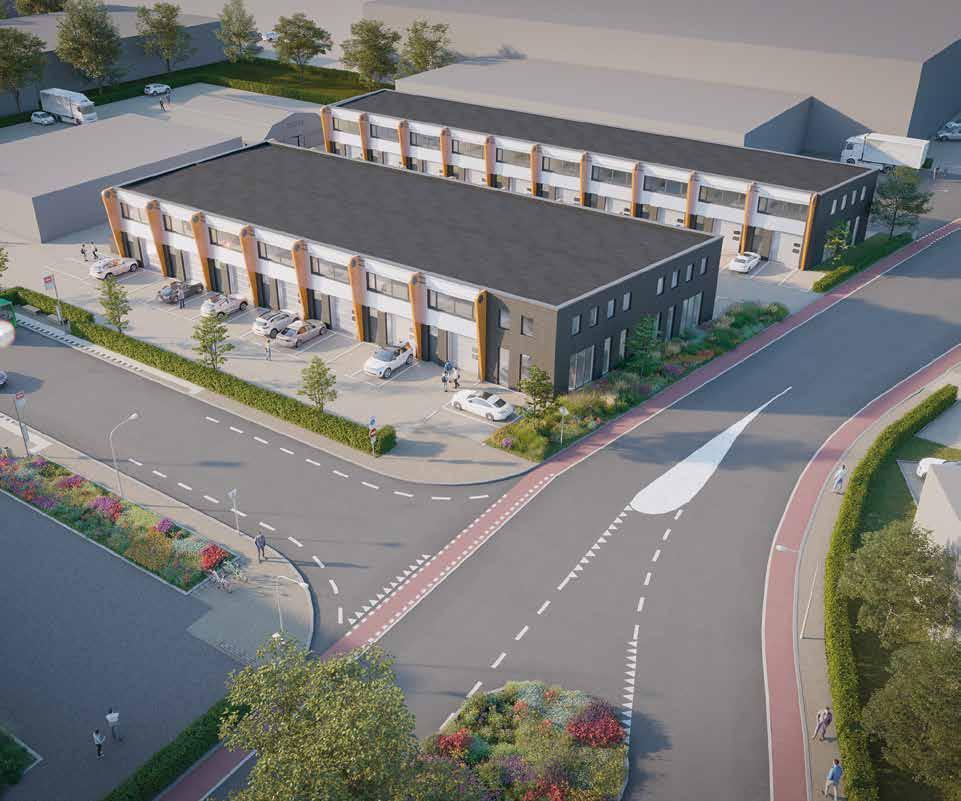 25 Bedrijfsunits van 120 m2 tot 145 m2. Daarnaast 3 speciale hoekunits met een oppervlak van 174 m2 tot 271 m2.