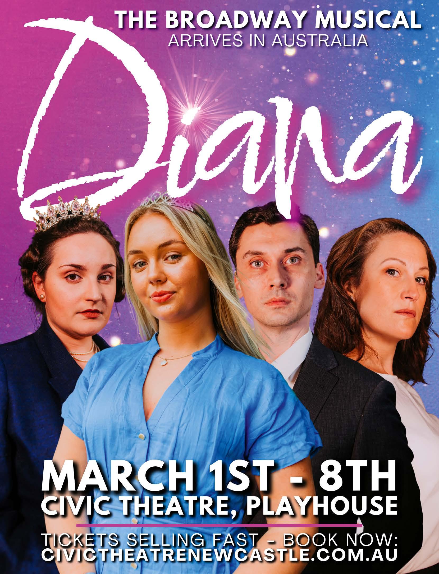 This March, Hyde Entertainment brings Diana to the Playhouse at Civic Theatre Newcastle in a bold new production that strips away the mythology to reveal the woman behind the headlines. Read more on page 12. Image Credit: York & Hellier Photography